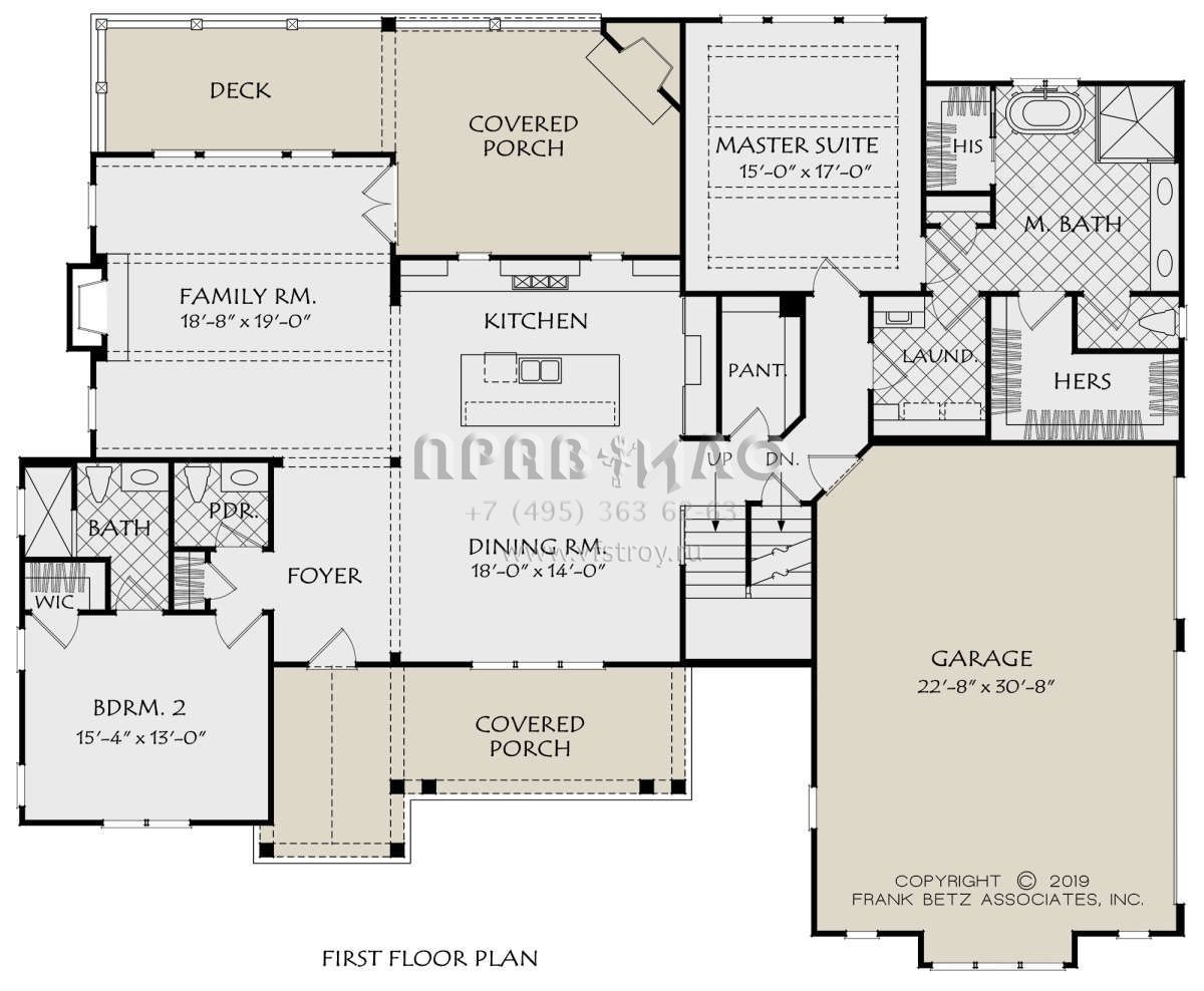 Проект двухэтажного дома с гаражом на две машины в стиле Ранчо S5-270 (8594-00419)
