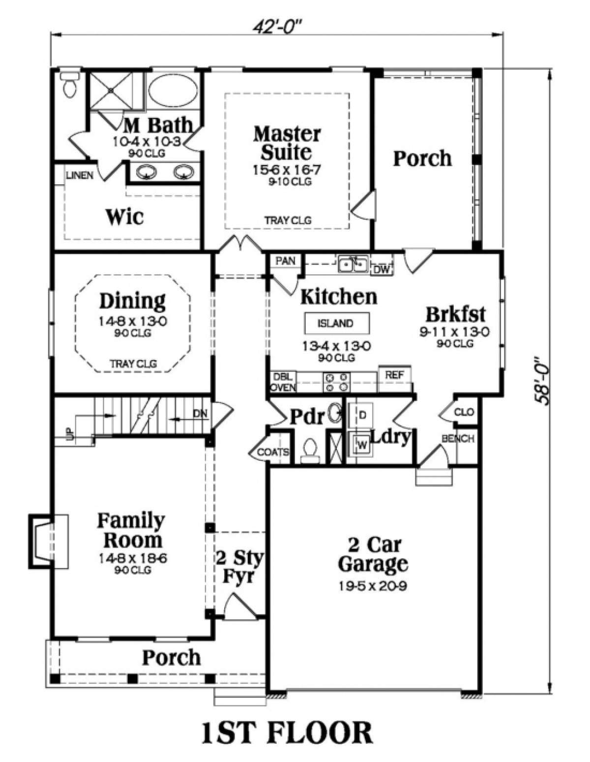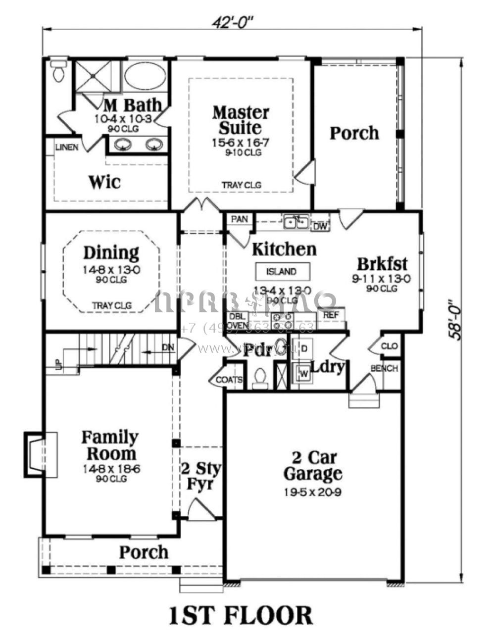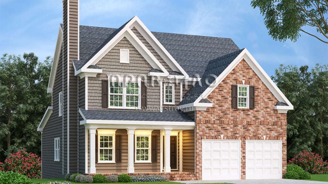 Проект двухэтажного дома с гаражом на две машины в стиле Ранчо S5-271 (009-00119)