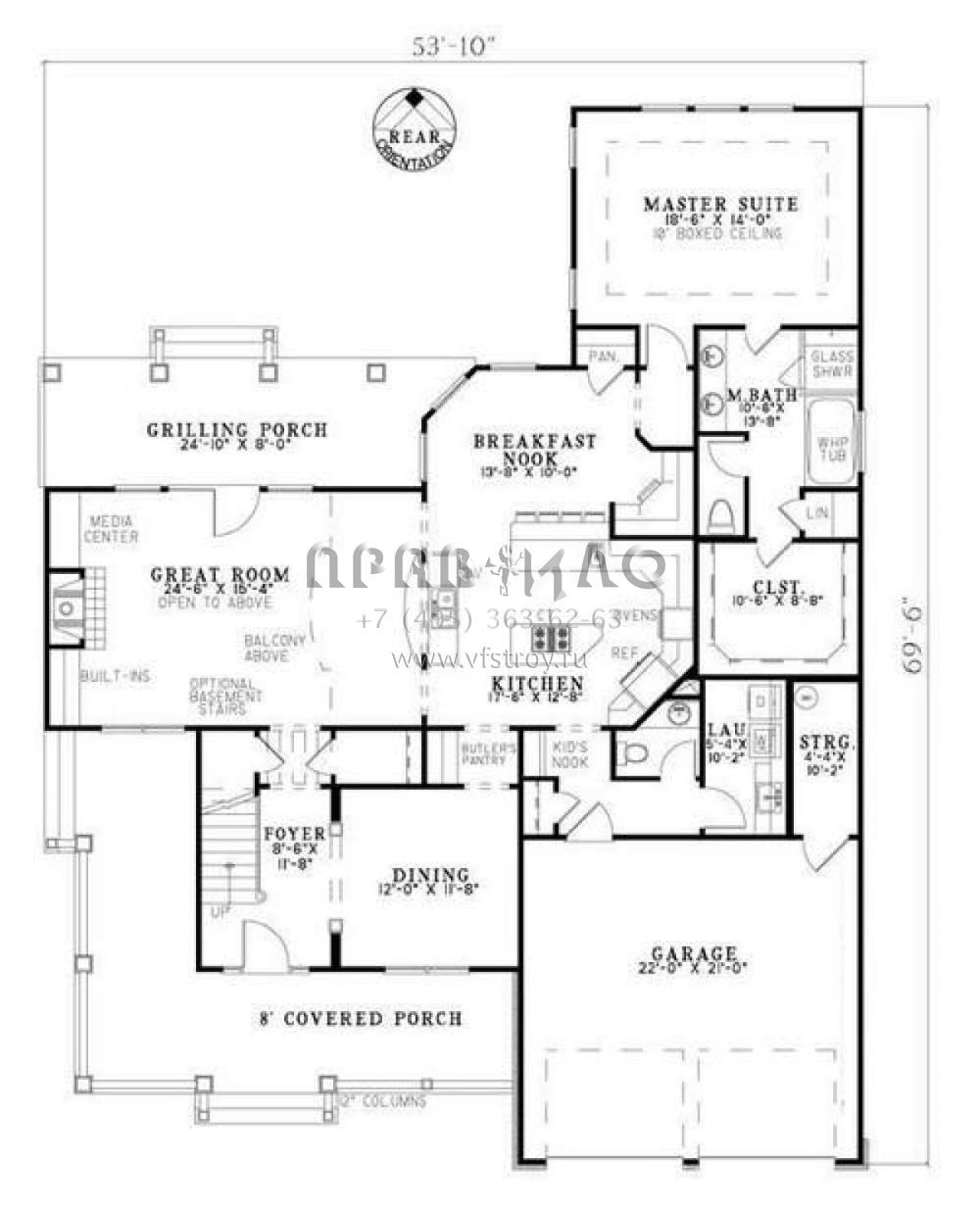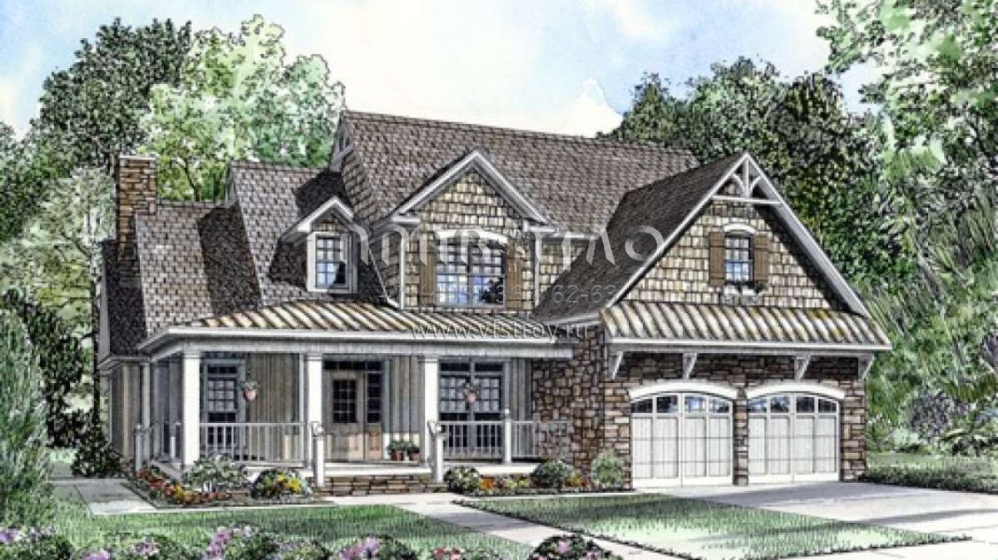Проект двухэтажного дома с гаражом на две машины в стиле Ранчо S5-271 (110-00745)