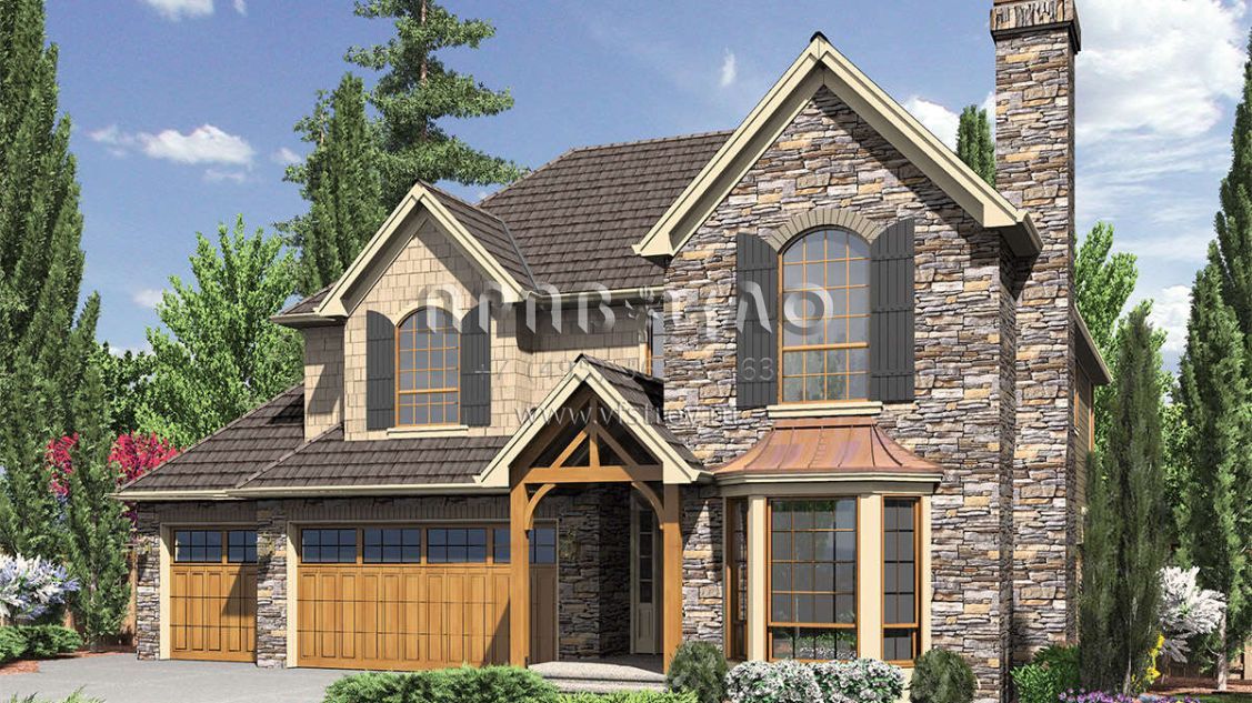 Проект двухэтажного дома с гаражом на три и более машин в стиле Ранчо S5-271 (2559-00288)