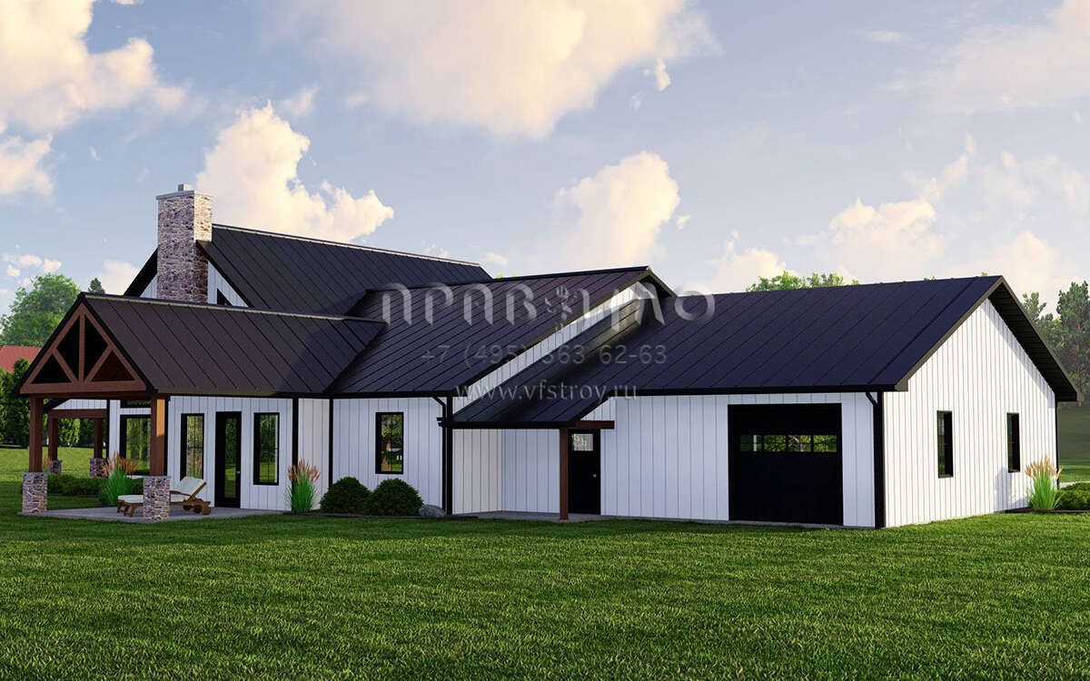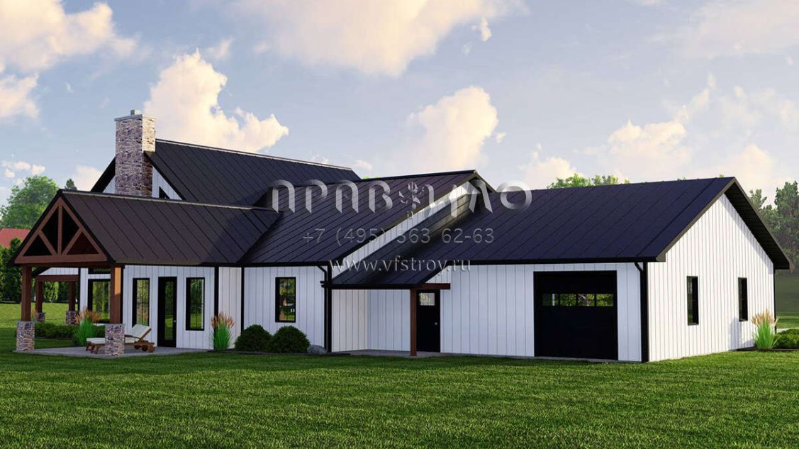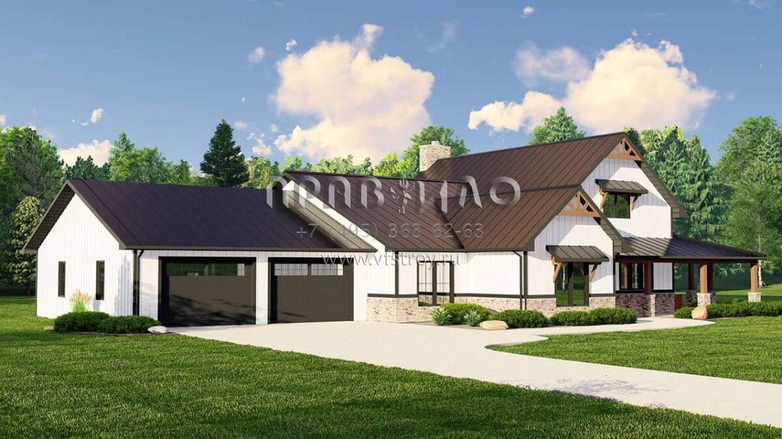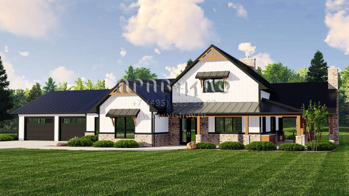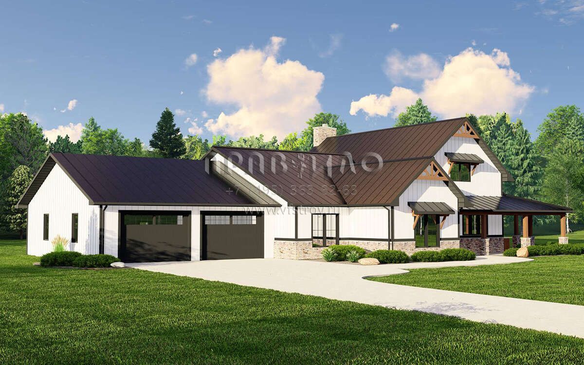 Проект одноэтажного дома с гаражом на две машины в стиле БарнХаус S5-271 (5032-00223)