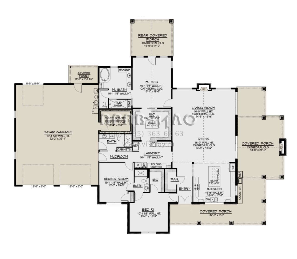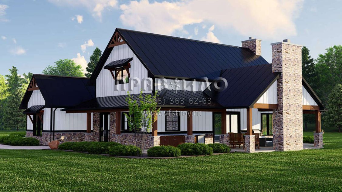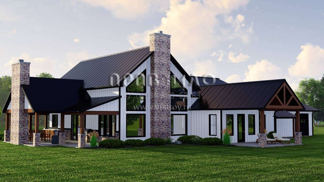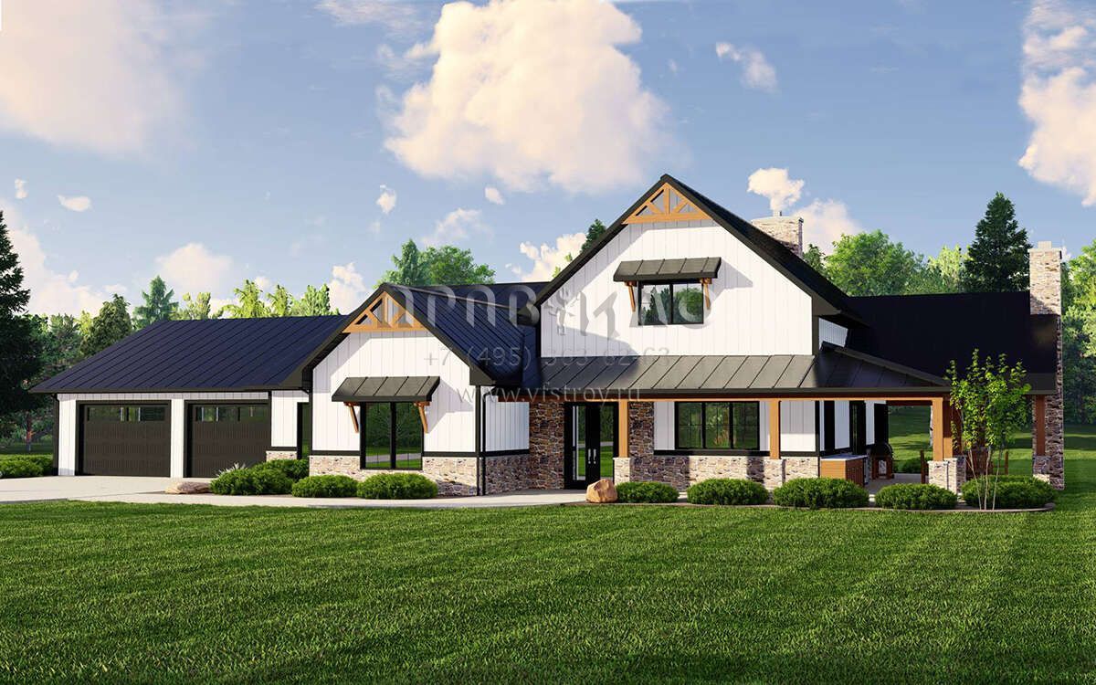 Проект одноэтажного дома с гаражом на две машины в стиле БарнХаус S5-271 (5032-00223)