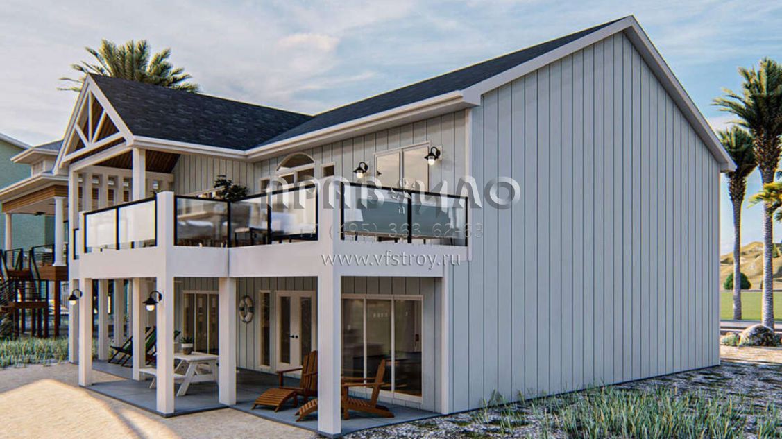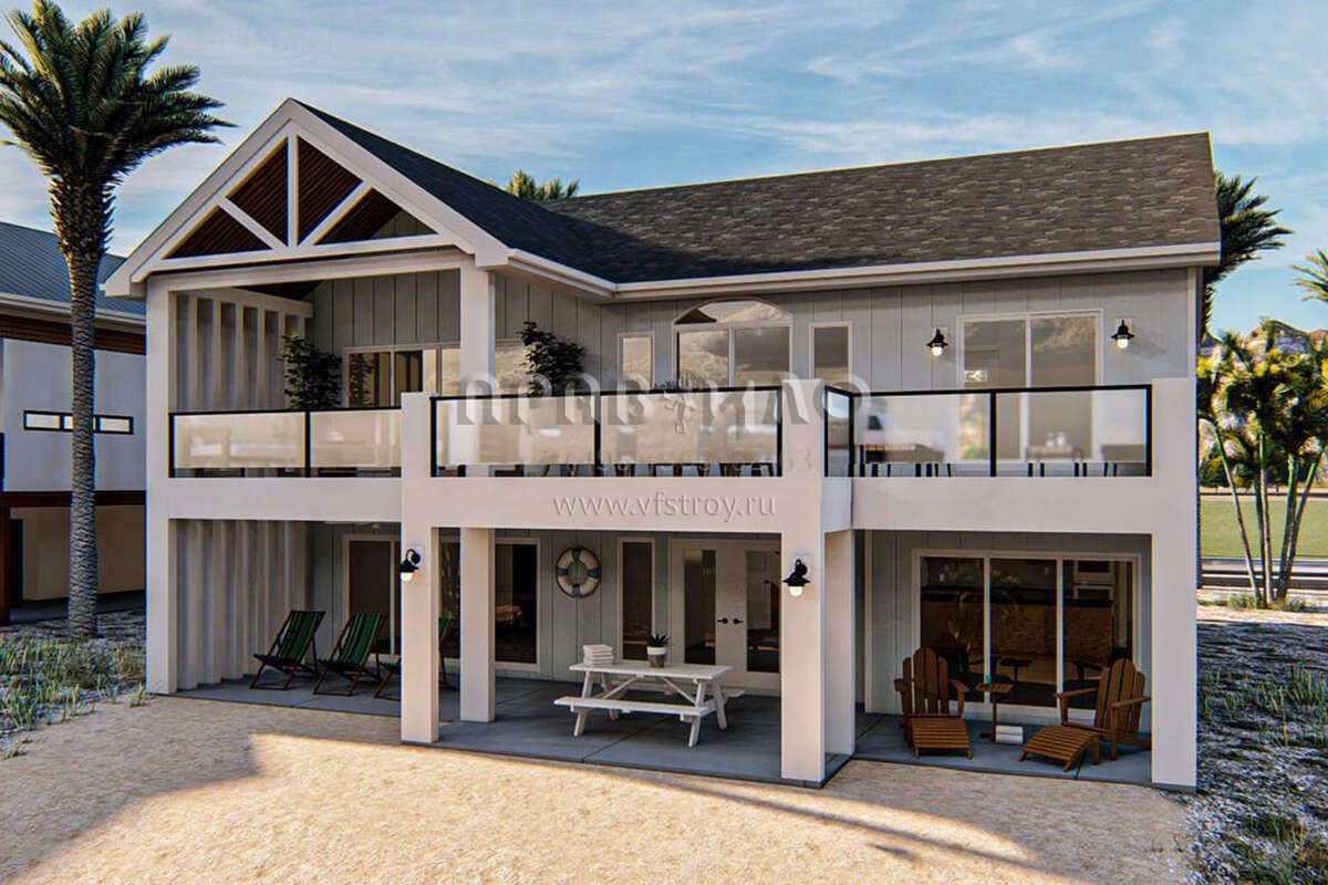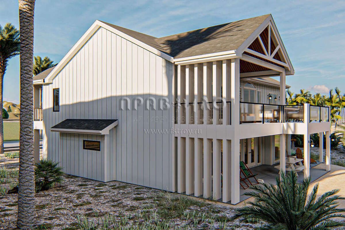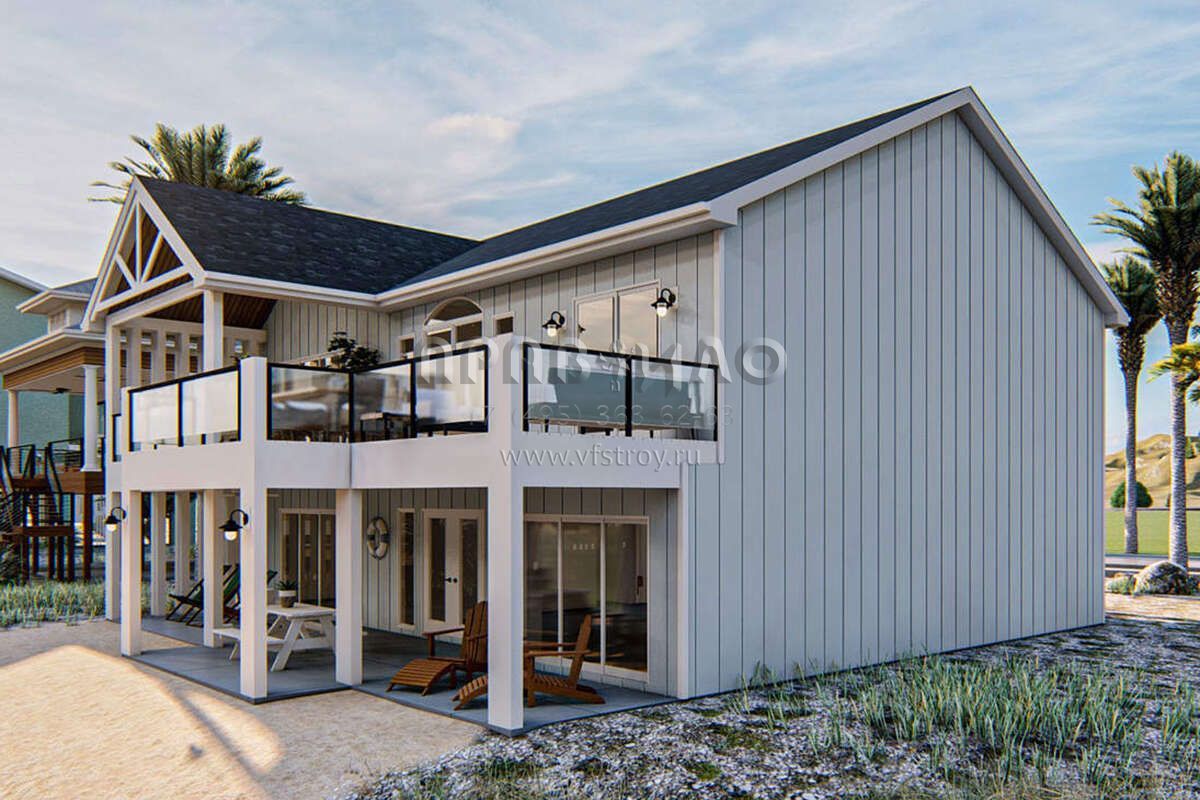 S5-271 (963-00458) Это иностранный проект, для которого требуется адаптация под нормы, действующие в Российской Федерации. Вы видите проект дома в прибрежном стиле. В этом доме сочетаются черты сельской постройки и аскетичность лофта. Внутри жильцы смогут проводить время с максимальным комфортом. Обратим внимание, что сейчас на планировках все размеры представлены в футах. Для перевода в метры вам необходимо значение в футах умножить на 0,3048.