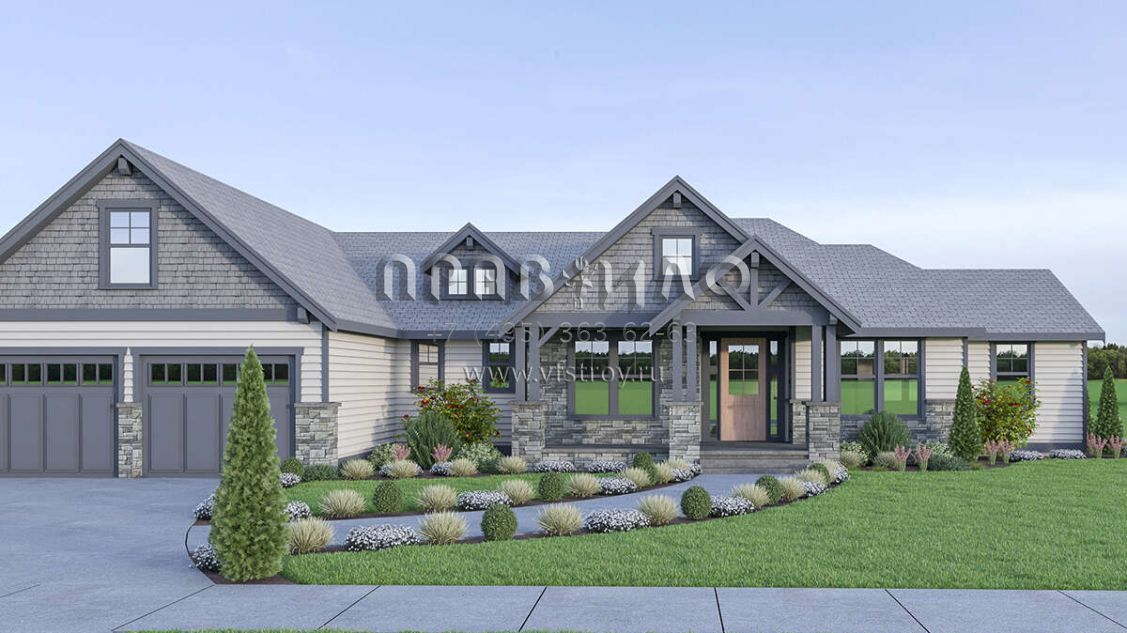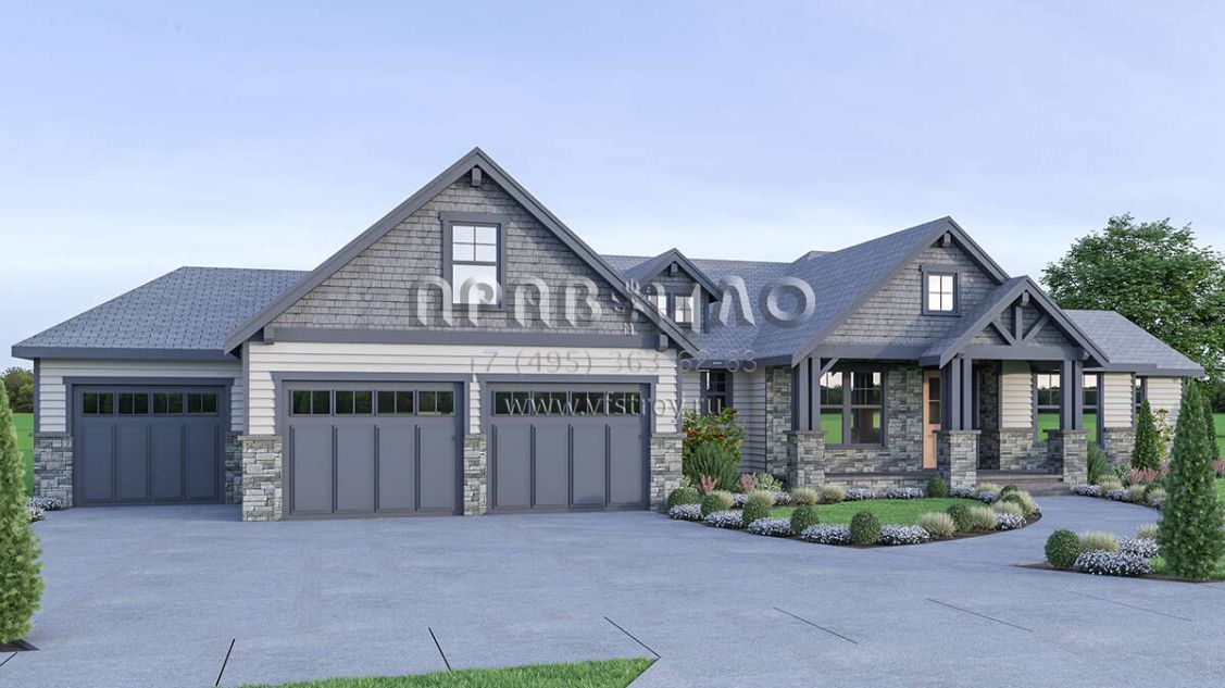 Проект двухэтажного дома с гаражом на три и более машин в американском стиле S5-272 (2464-00024)