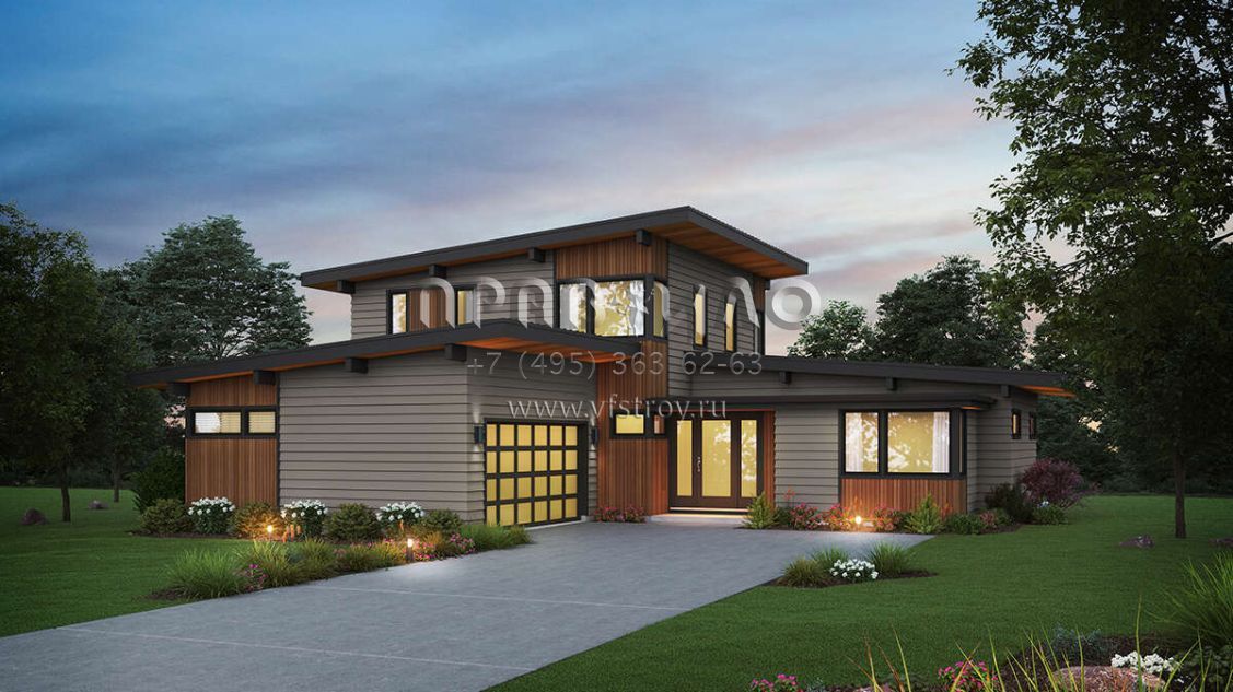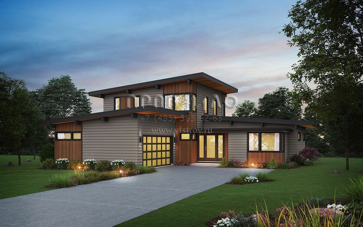 Проект двухэтажного дома с гаражом на две машины в современном стиле S5-272 (2559-01022)