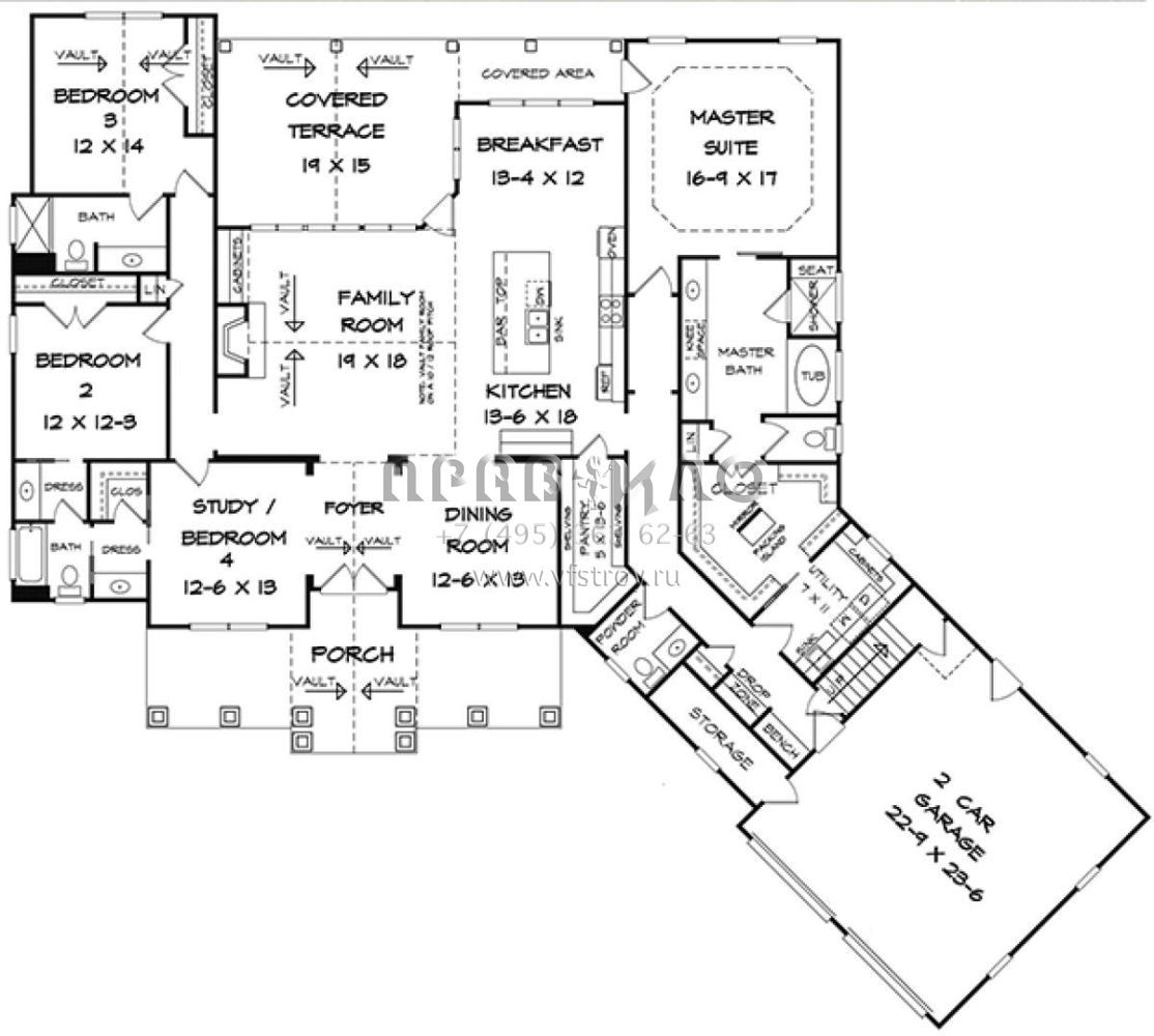 Проект одноэтажного дома с гаражом на две машины в американском стиле S5-272 (6082-00032)