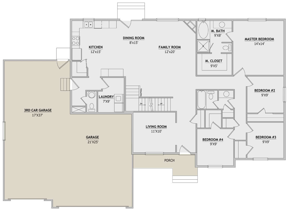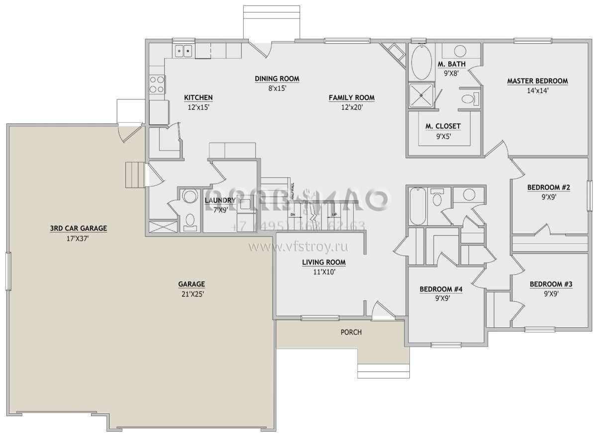 Проект двухэтажного дома с гаражом на три и более машин в стиле Ранчо S5-272 (8768-00056)