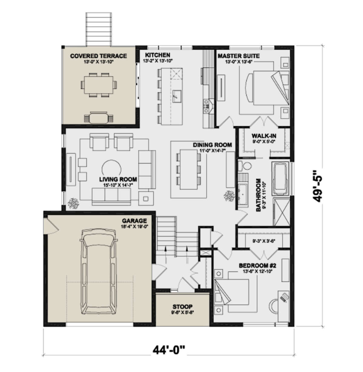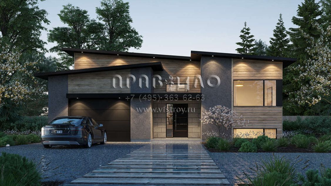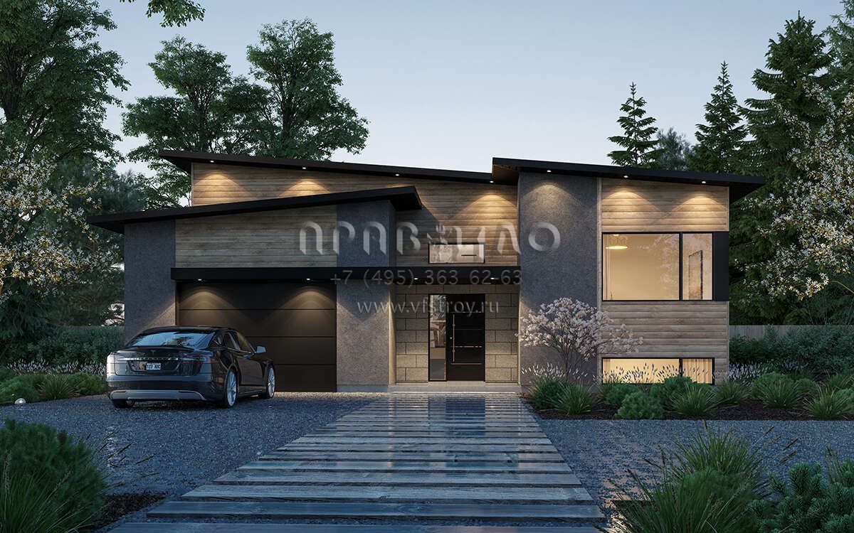 Проект одноэтажного дома с гаражом на одну машину в современном стиле S5-273 (034-01345)