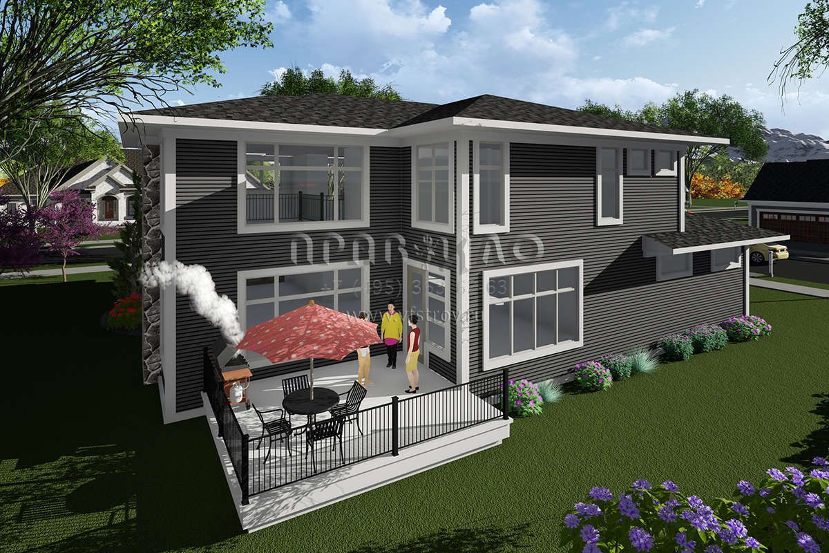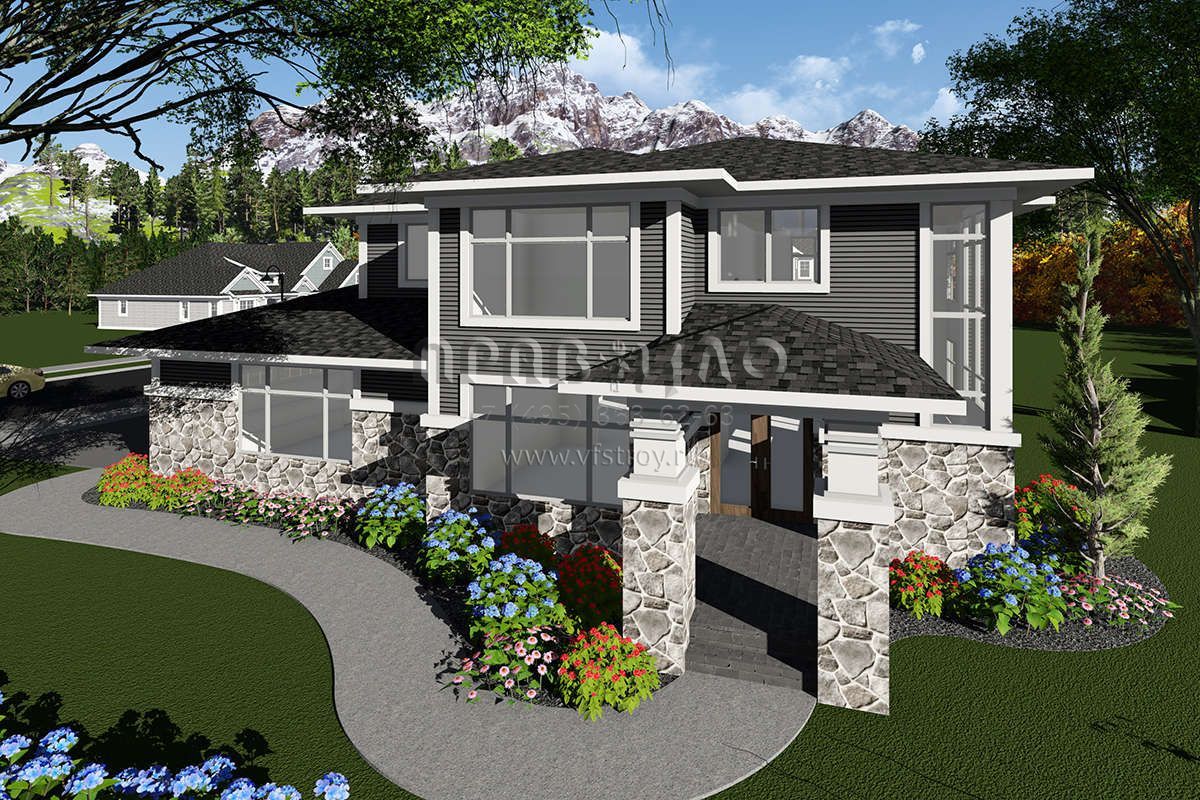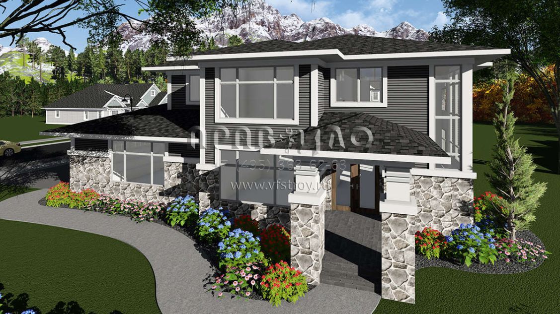 Проект двухэтажного дома с гаражом на три и более машин в стиле Райт S5-273 (1020-00073)