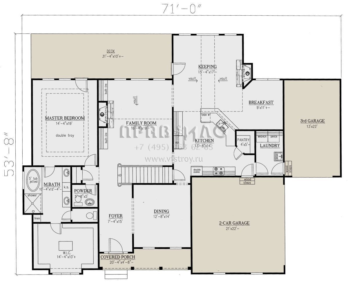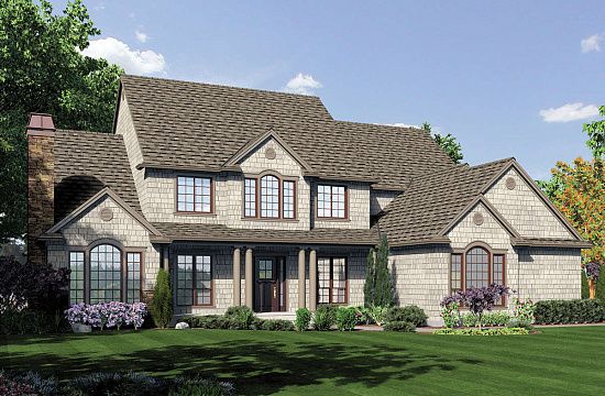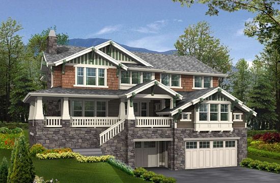 Проект двухэтажного дома с гаражом на три и более машин в стиле Ранчо S5-273 (286-00096)