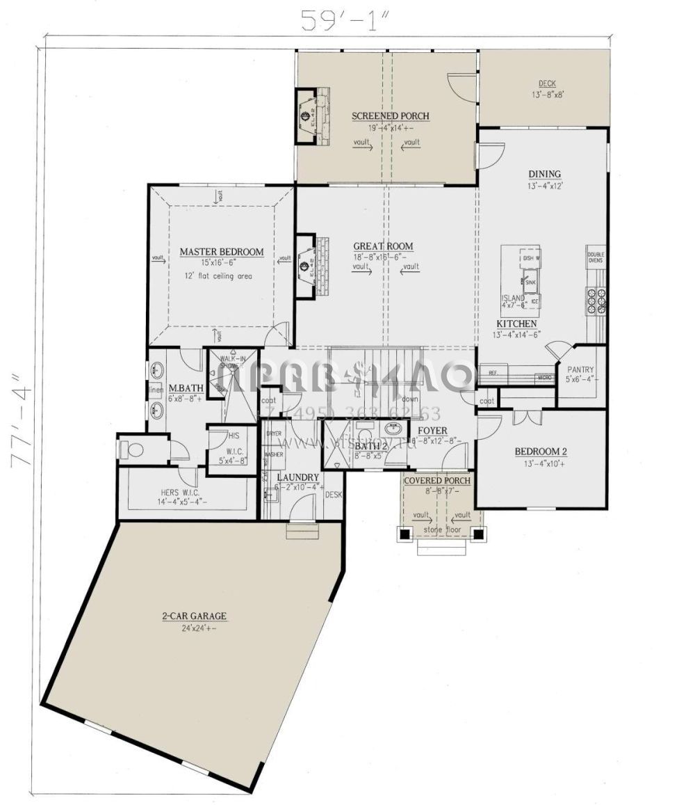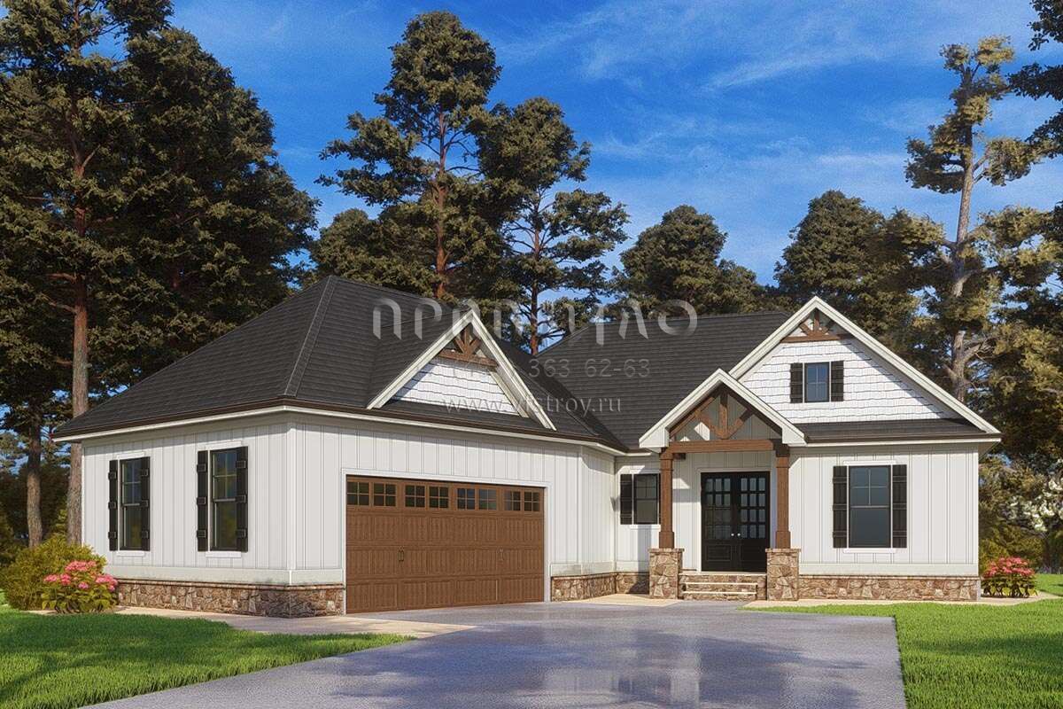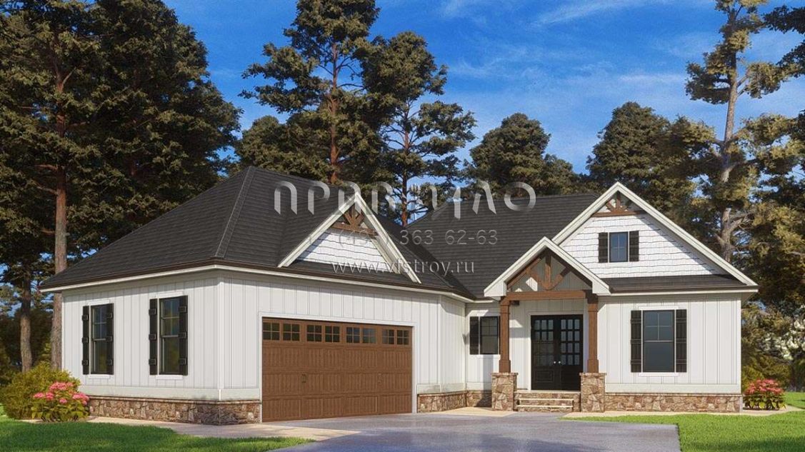 Проект одноэтажного дома с гаражом на две машины в американском стиле S5-273 (286-00108)