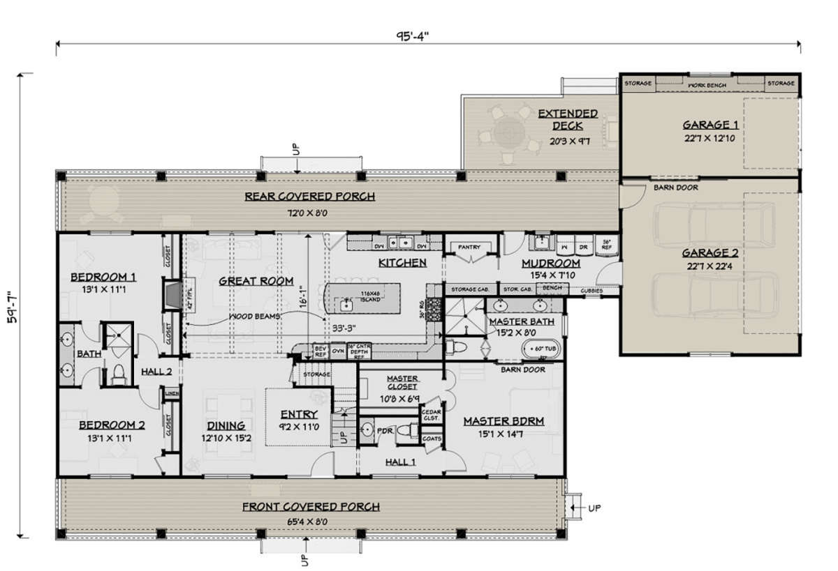 Проект двухэтажного дома с гаражом на три и более машин в стиле Ранчо S5-273 (3125-00027)