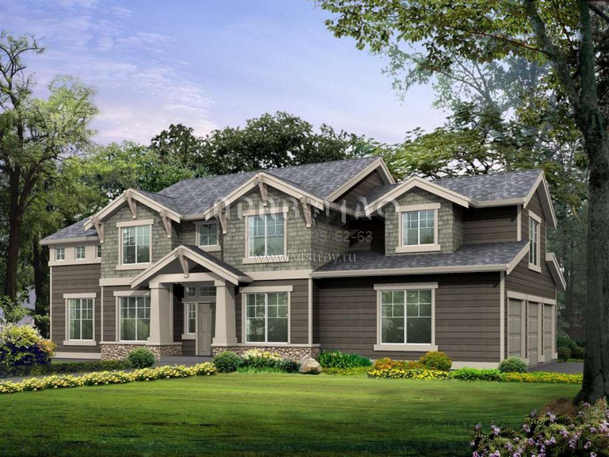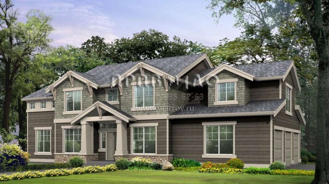 Проект двухэтажного дома с гаражом на три и более машин в стиле Шале S5-273 (341-00084)