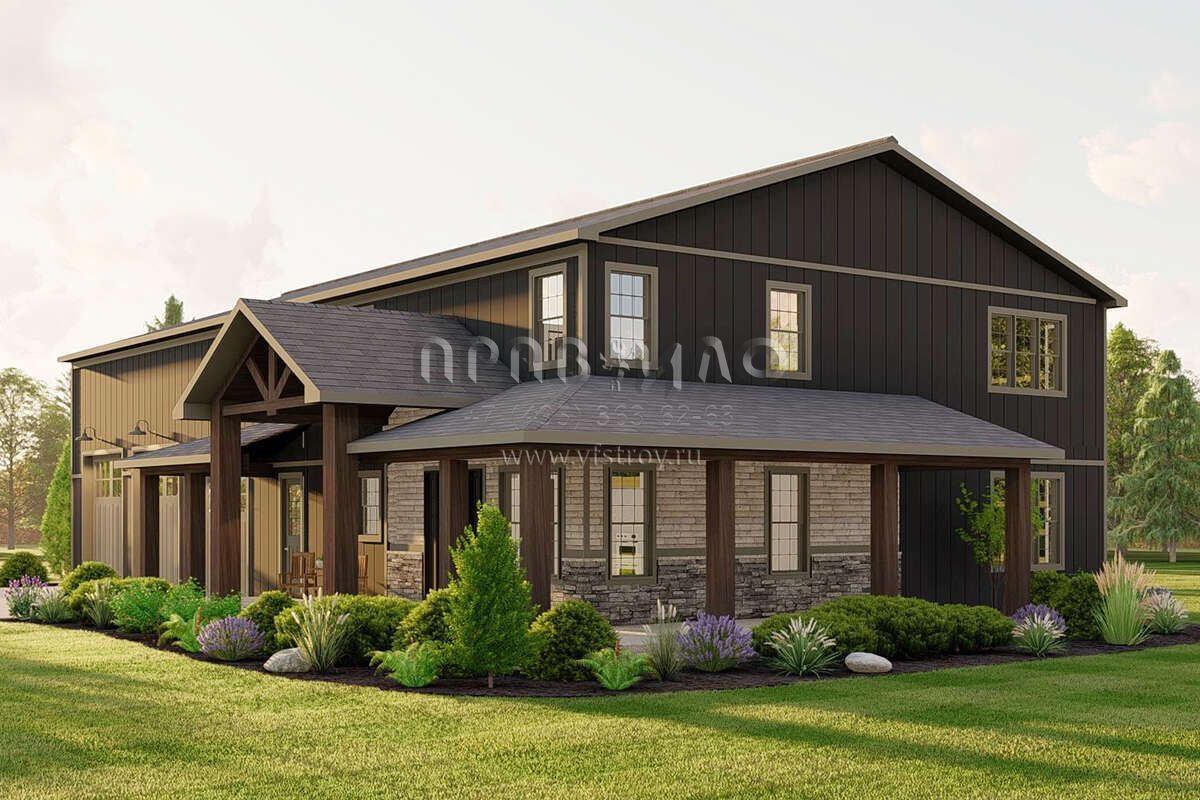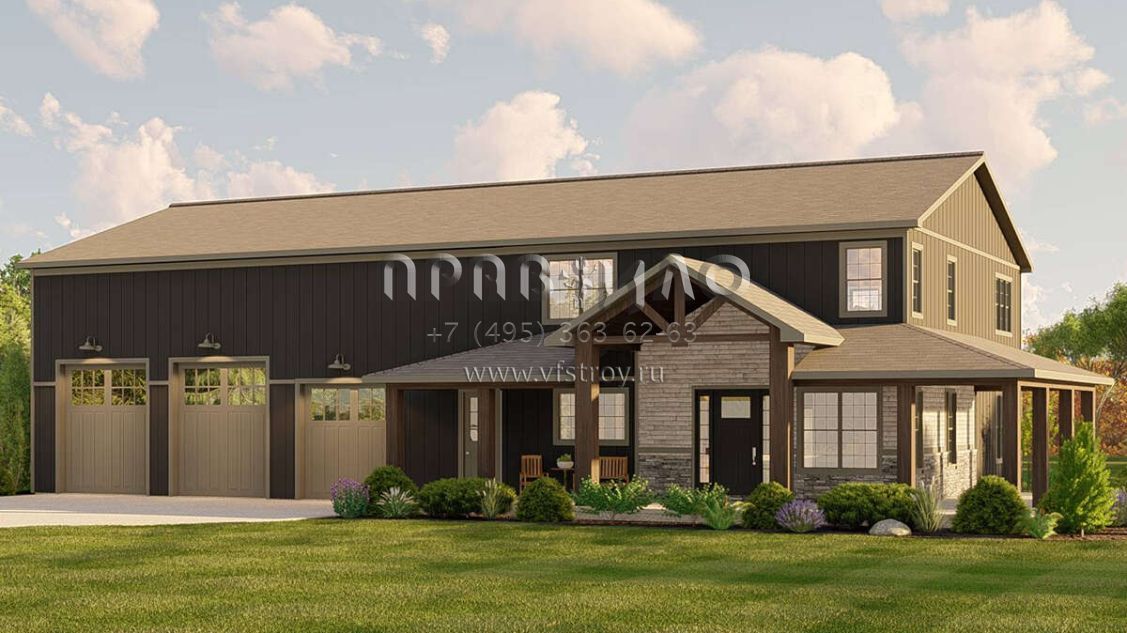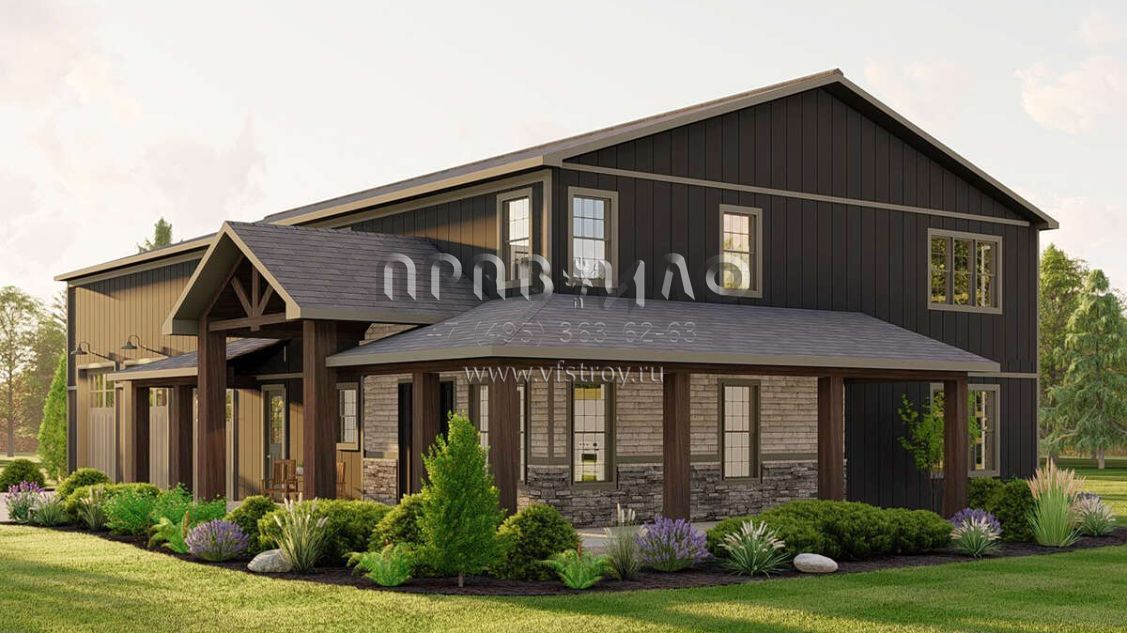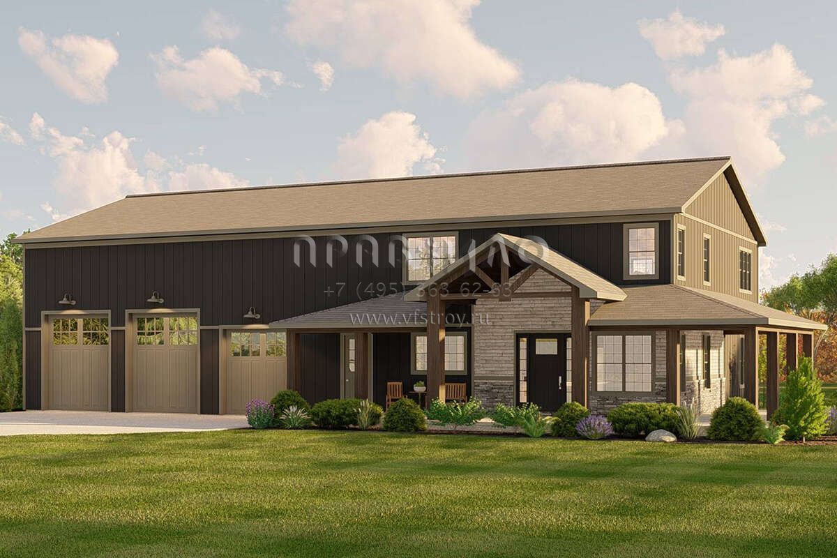 Проект двухэтажного дома с гаражом на три и более машин в стиле БарнХаус S5-273 (5032-00183)