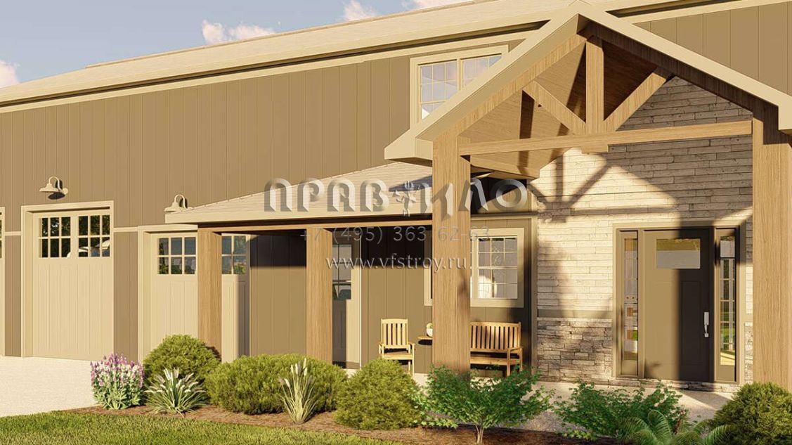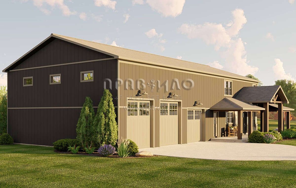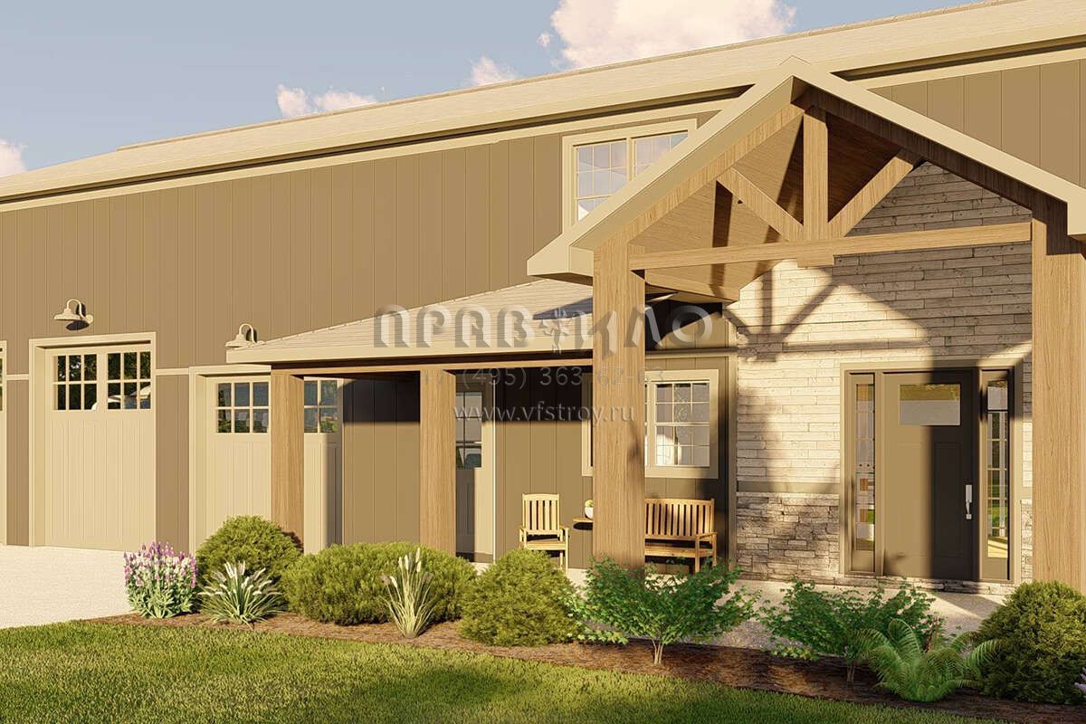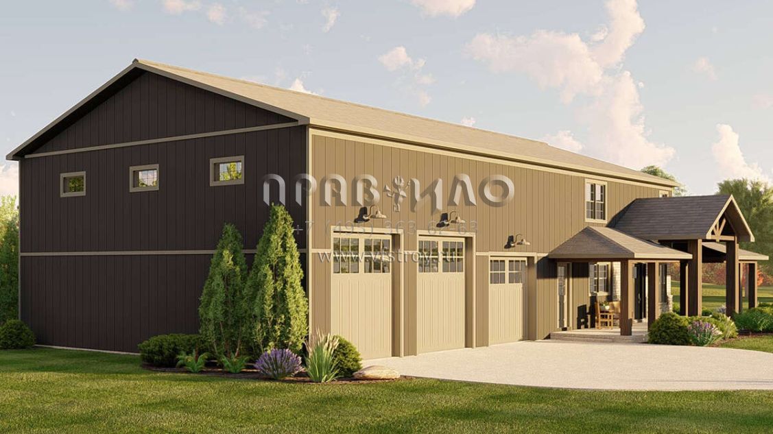 Проект двухэтажного дома с гаражом на три и более машин в стиле БарнХаус S5-273 (5032-00183)