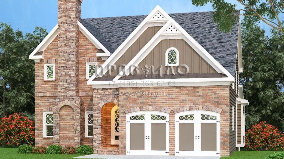 Это проект двухэтажного дома с гаражом на две машины жилой площадью 274 кв.м. Длина дома 17.7 м, ширина 12.8 м, высота 10.1 м. В доме пять спален и четыре санузла.