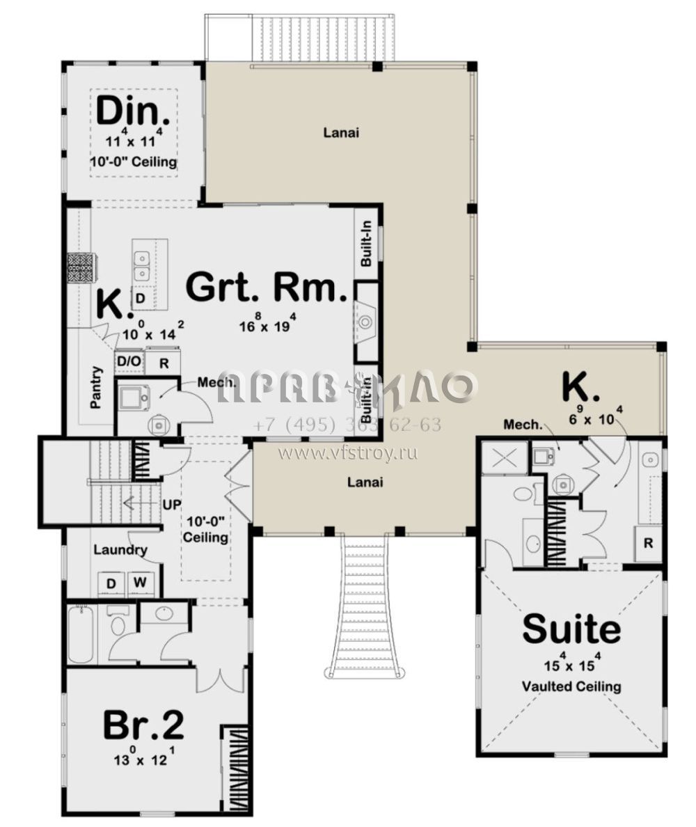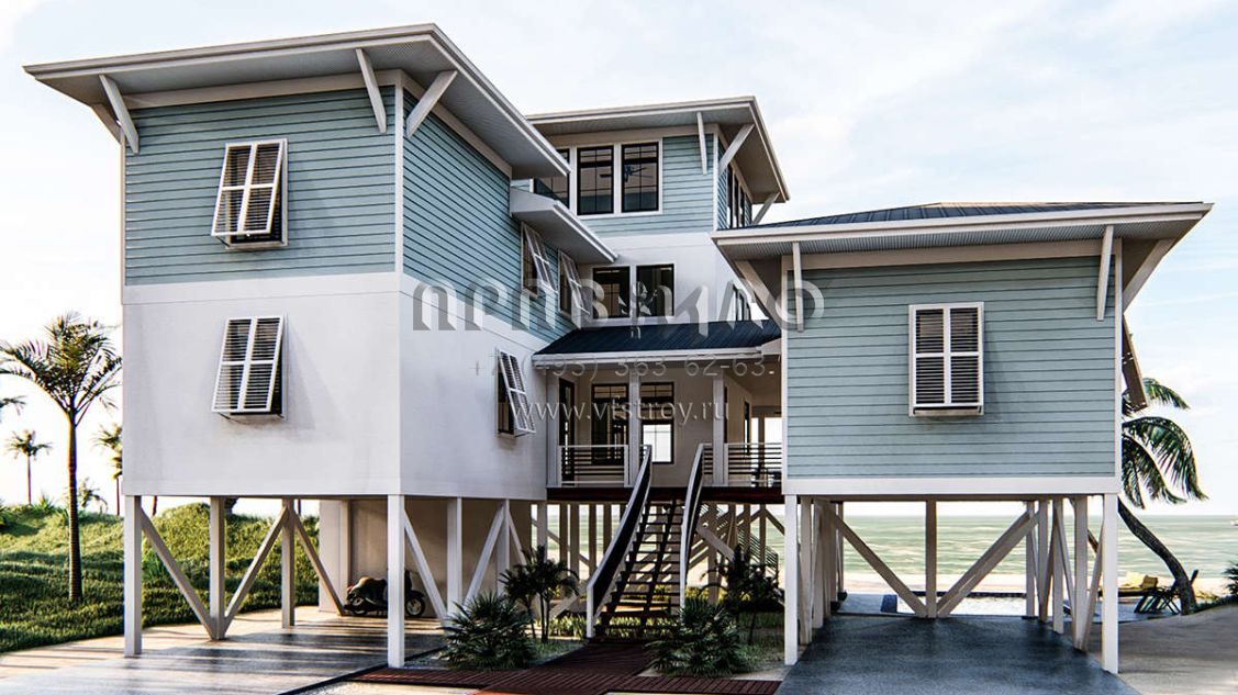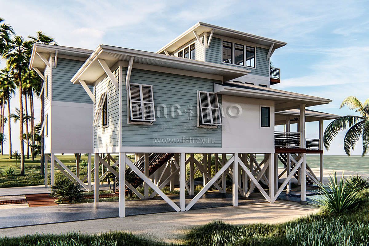 S5-274 (963-00374) Это иностранный проект, для которого требуется адаптация под нормы, действующие в Российской Федерации. Вы видите проект дома в прибрежном стиле. В этом доме сочетаются черты сельской постройки и аскетичность лофта. Внутри жильцы смогут проводить время с максимальным комфортом. Обратим внимание, что сейчас на планировках все размеры представлены в футах. Для перевода в метры вам необходимо значение в футах умножить на 0,3048.