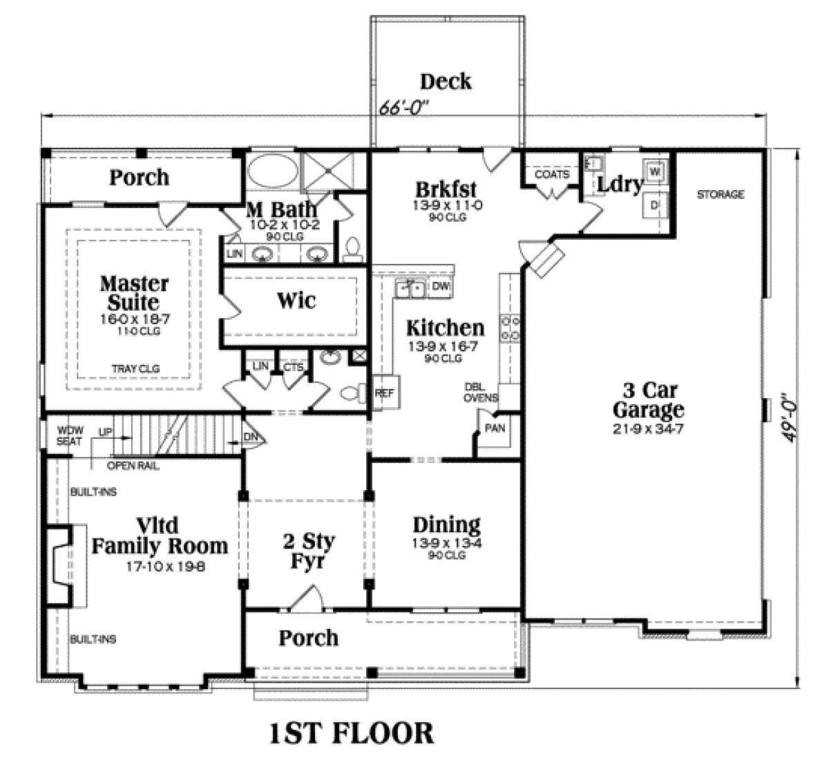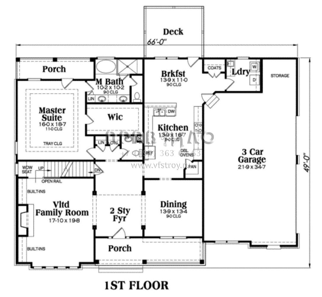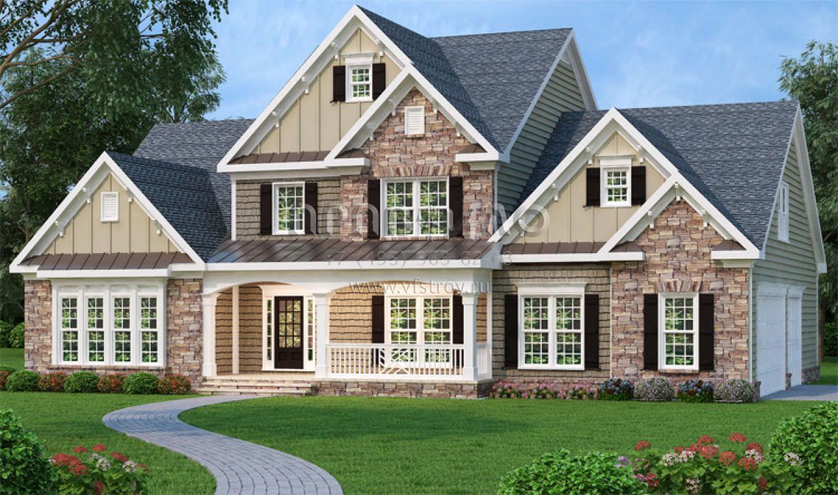 Проект двухэтажного дома с гаражом на три и более машин в стиле Ранчо S5-275 (009-00013)