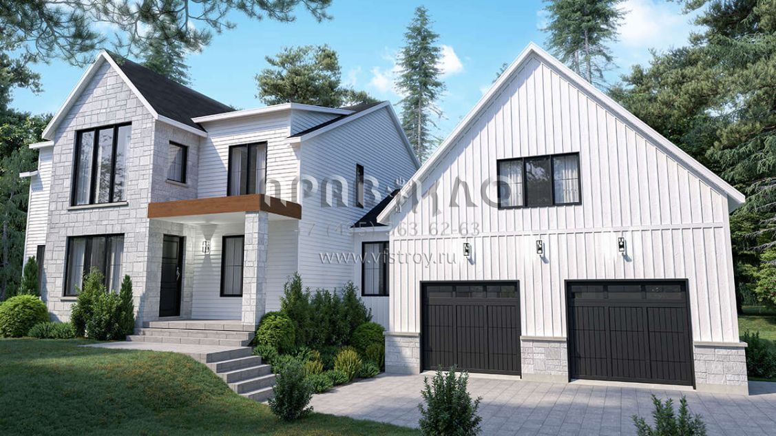 Проект двухэтажного дома с гаражом на две машины в современном стиле S5-275 (034-01285)