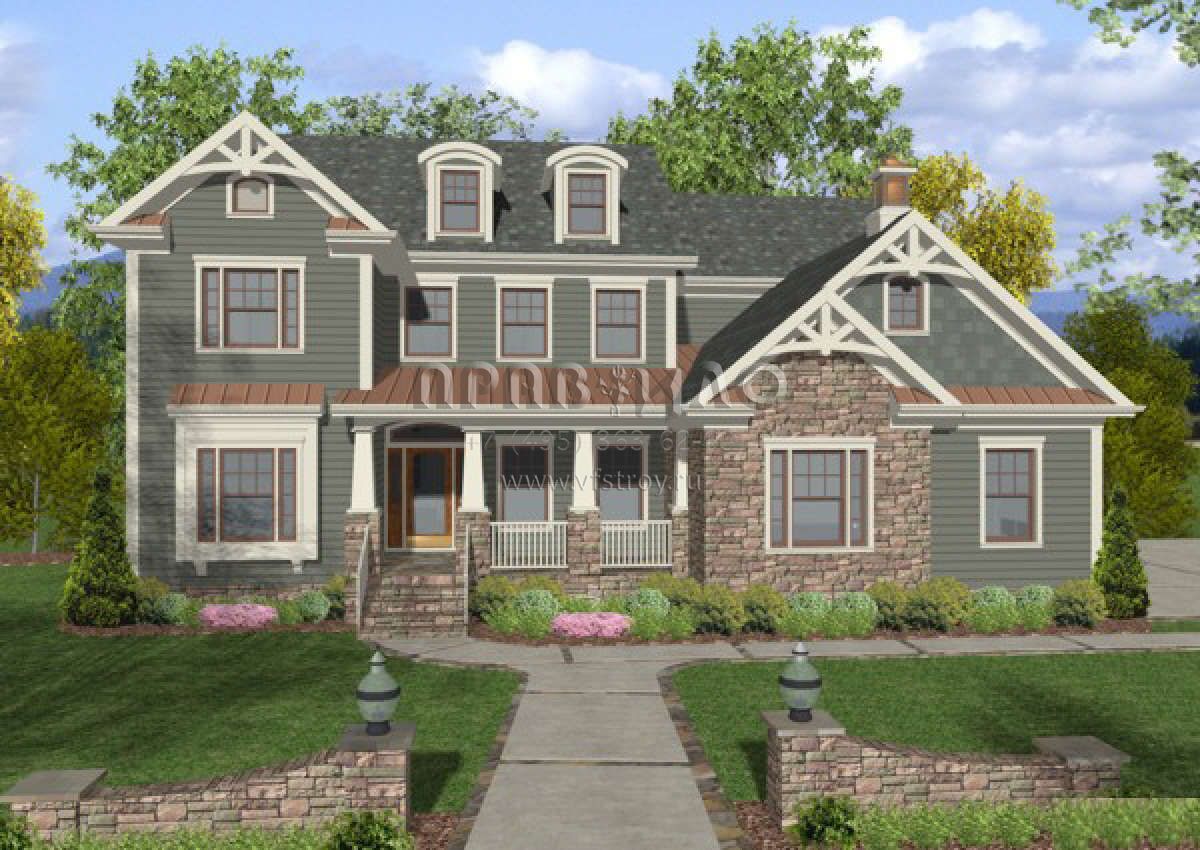 Проект двухэтажного дома с гаражом на три и более машин в американском стиле S5-275 (036-00138)