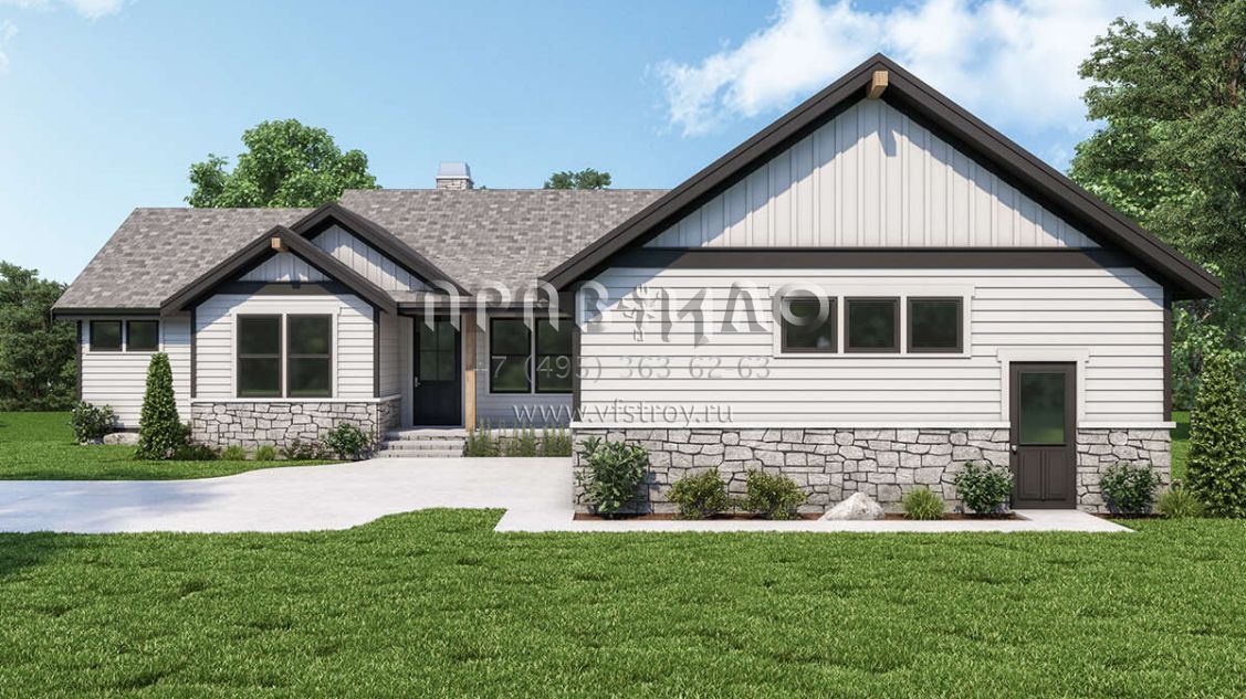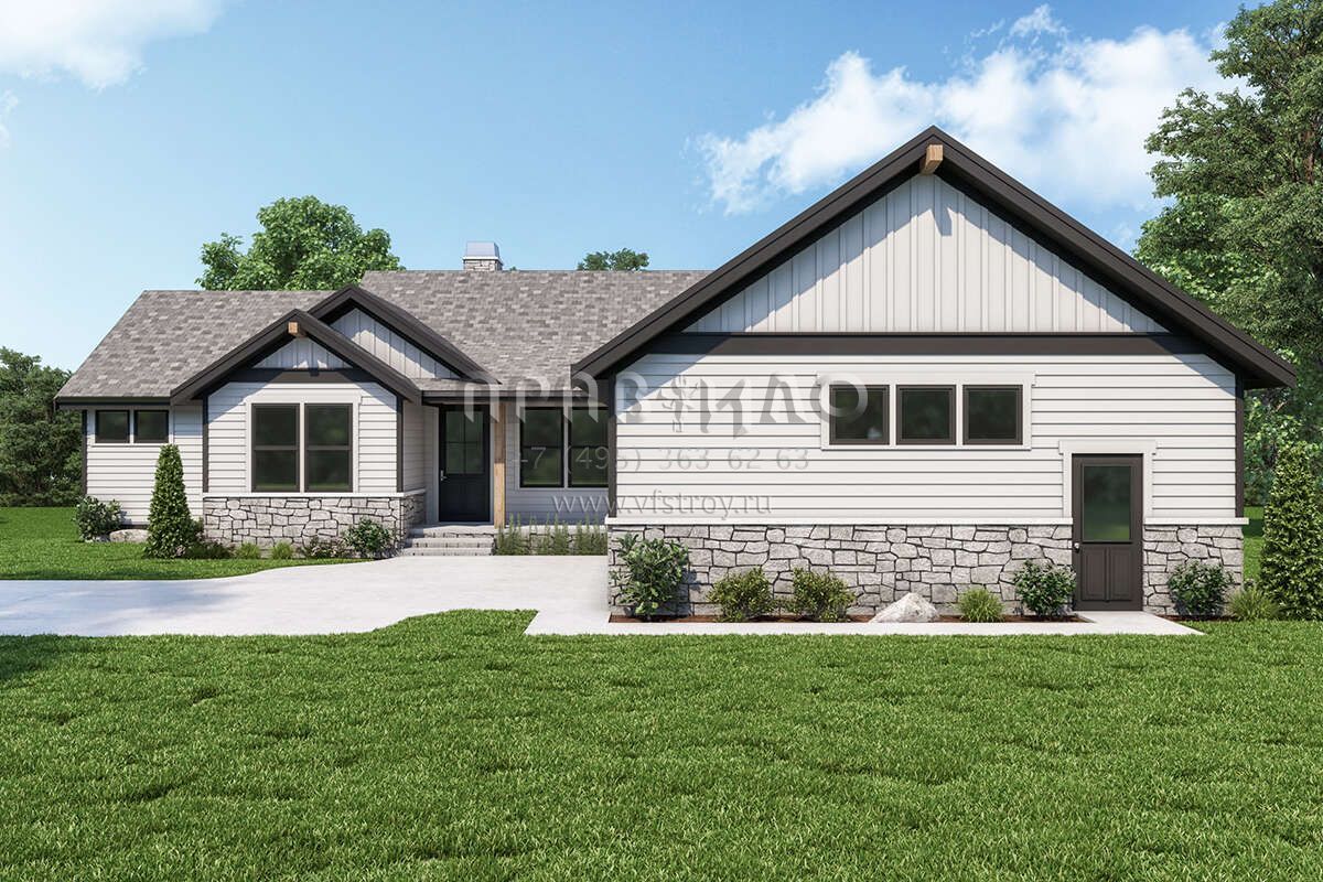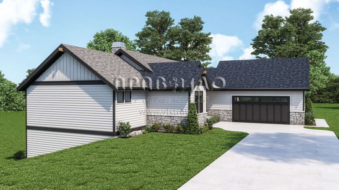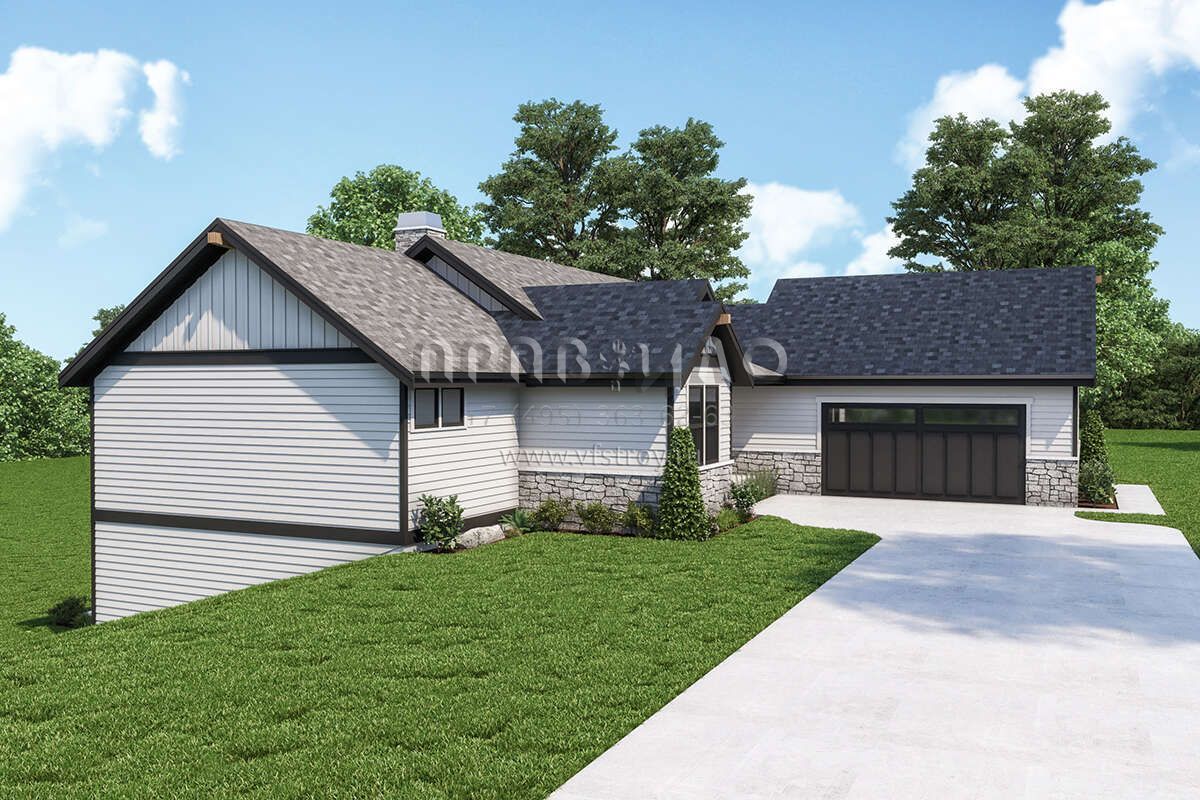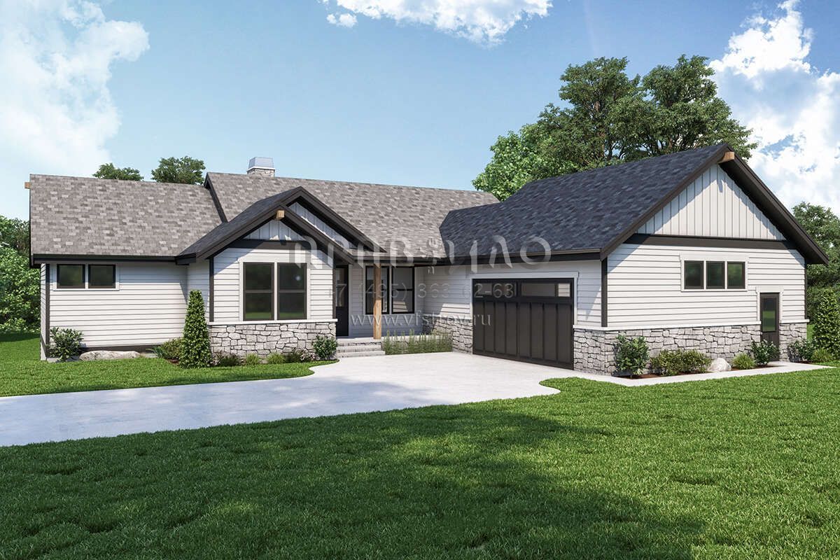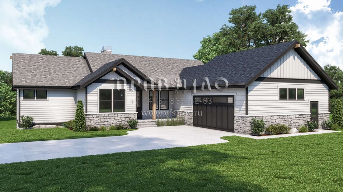 Проект одноэтажного дома с гаражом на две машины в стиле Ранчо S5-275 (2464-00033)
