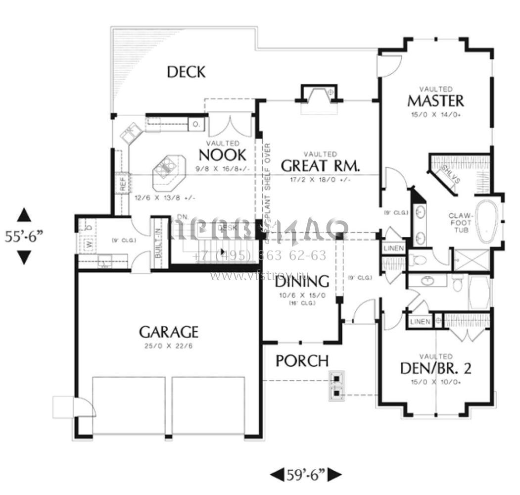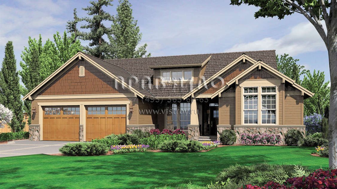 Проект одноэтажного дома с гаражом на две машины в стиле Ранчо S5-275 (2559-00110)