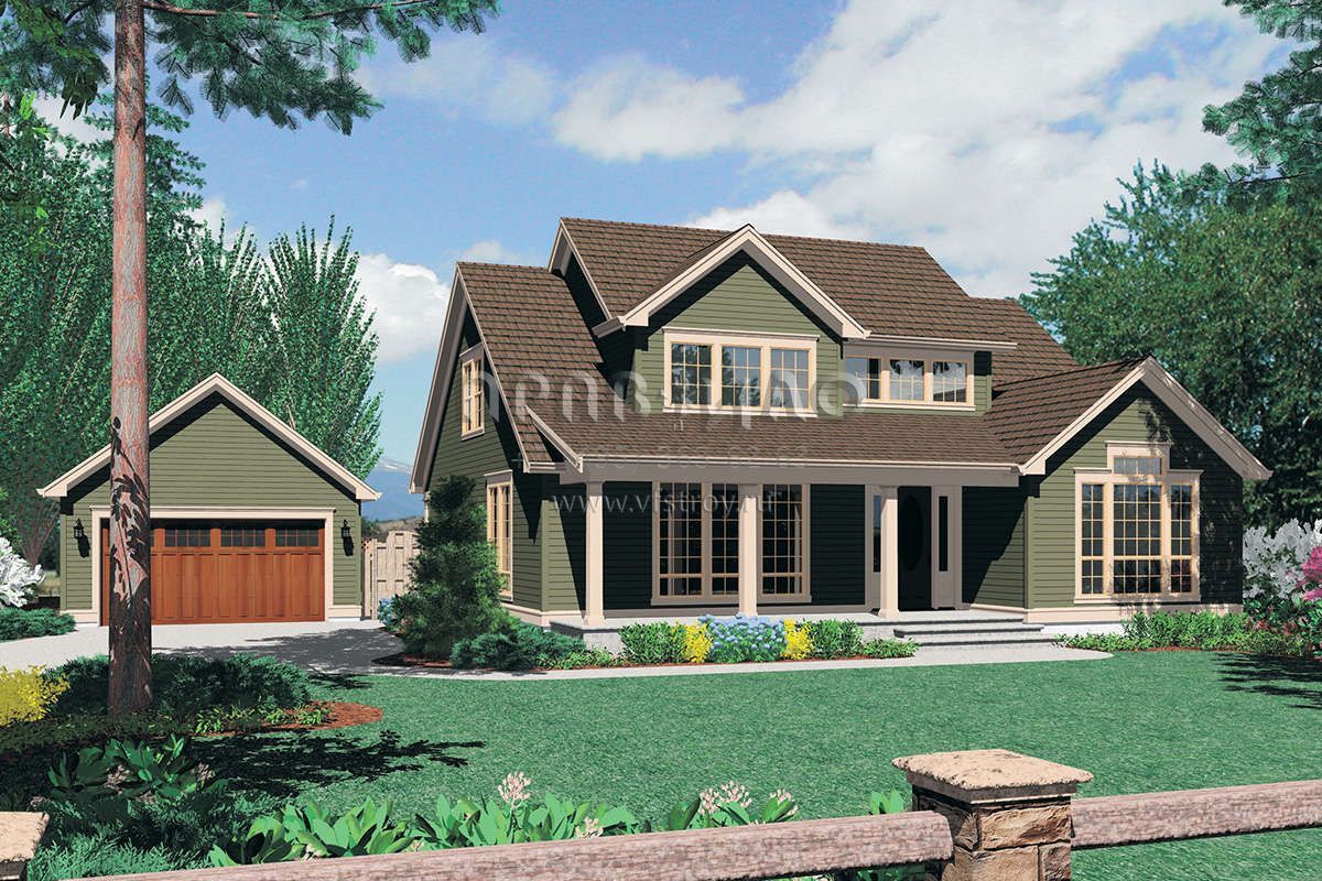 Проект двухэтажного дома с гаражом на две машины в стиле Ранчо S5-275 (2559-00349)
