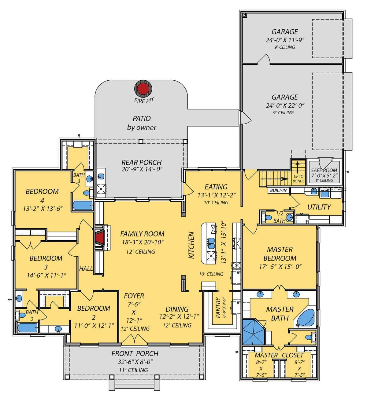 Проект одноэтажного дома с гаражом на три и более машин в стиле Ранчо S5-275 (9279-00046)