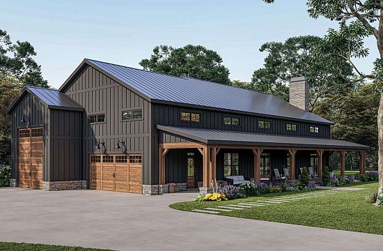 Проект одноэтажного дома с гаражом на три и более машин в стиле Шале S5-275 (957-00089)