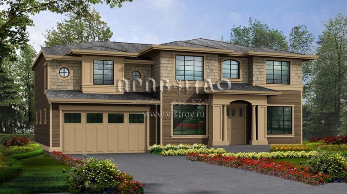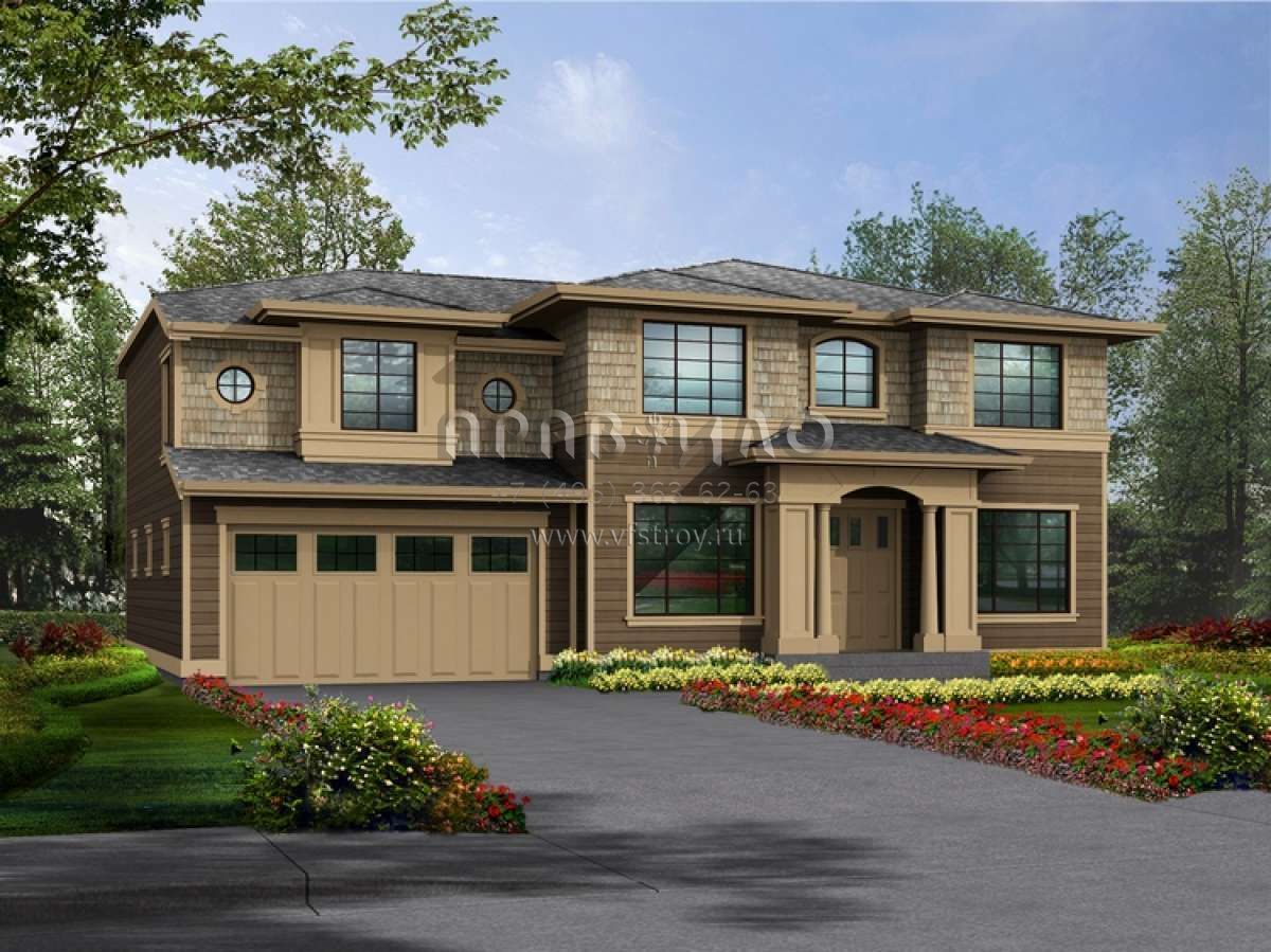 Проект двухэтажного дома с гаражом на три и более машин в американском стиле S5-276 (341-00094)