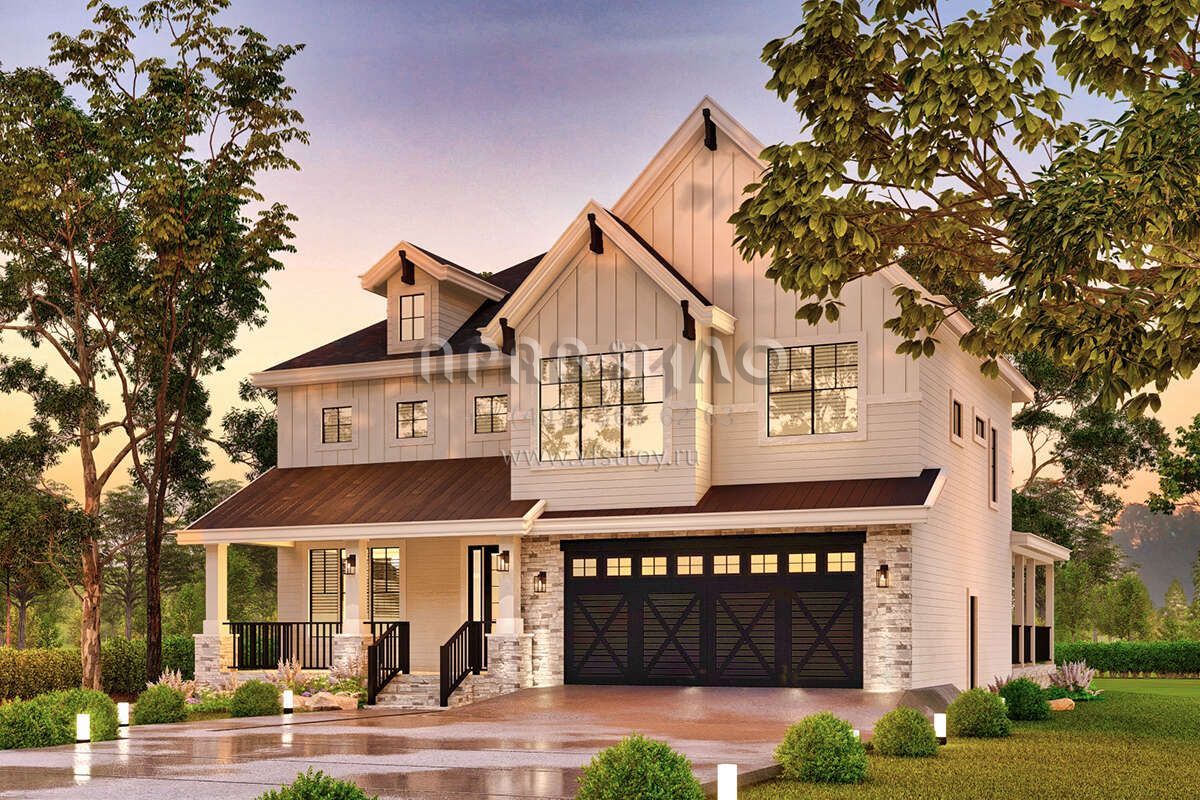 Проект двухэтажного дома с гаражом на две машины в американском стиле S5-276 (4195-00067)