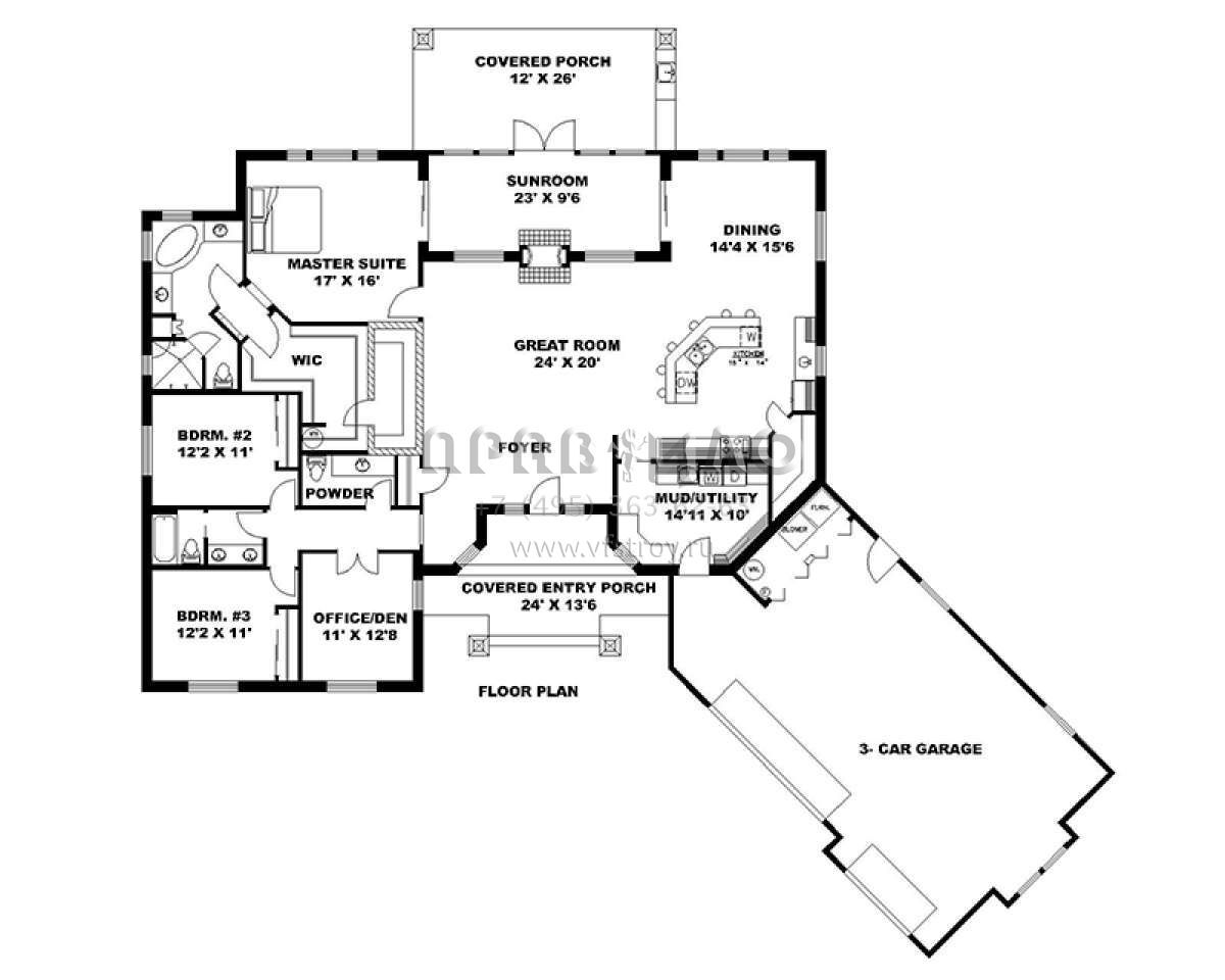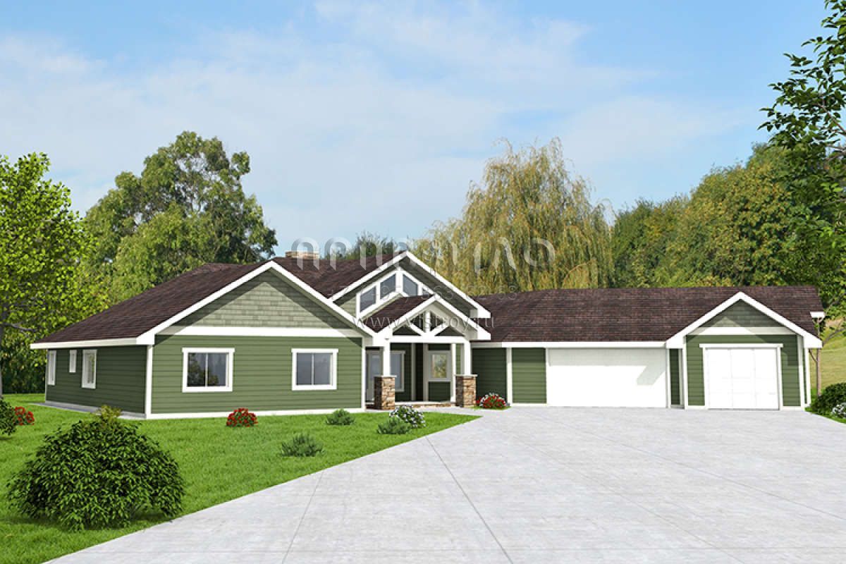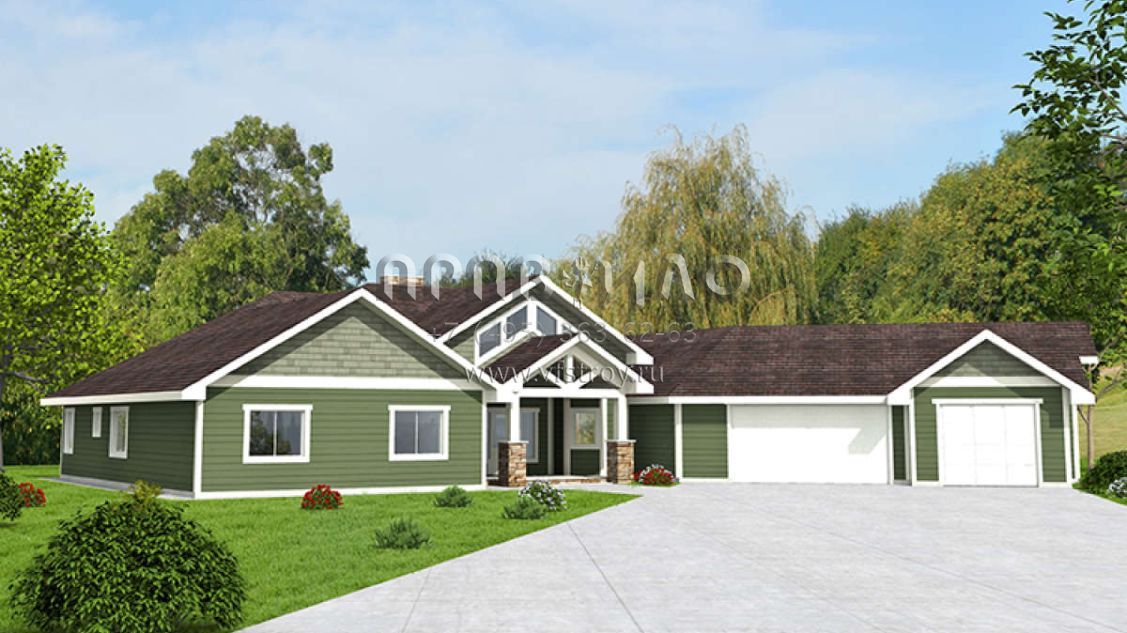 Проект одноэтажного дома с гаражом на три и более машин в американском стиле S5-277 (039-00598)