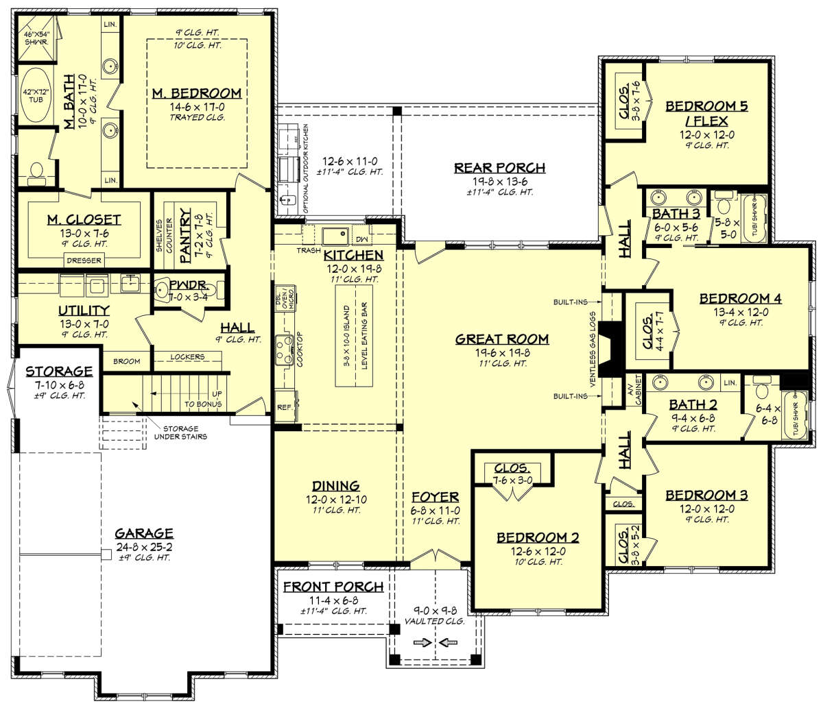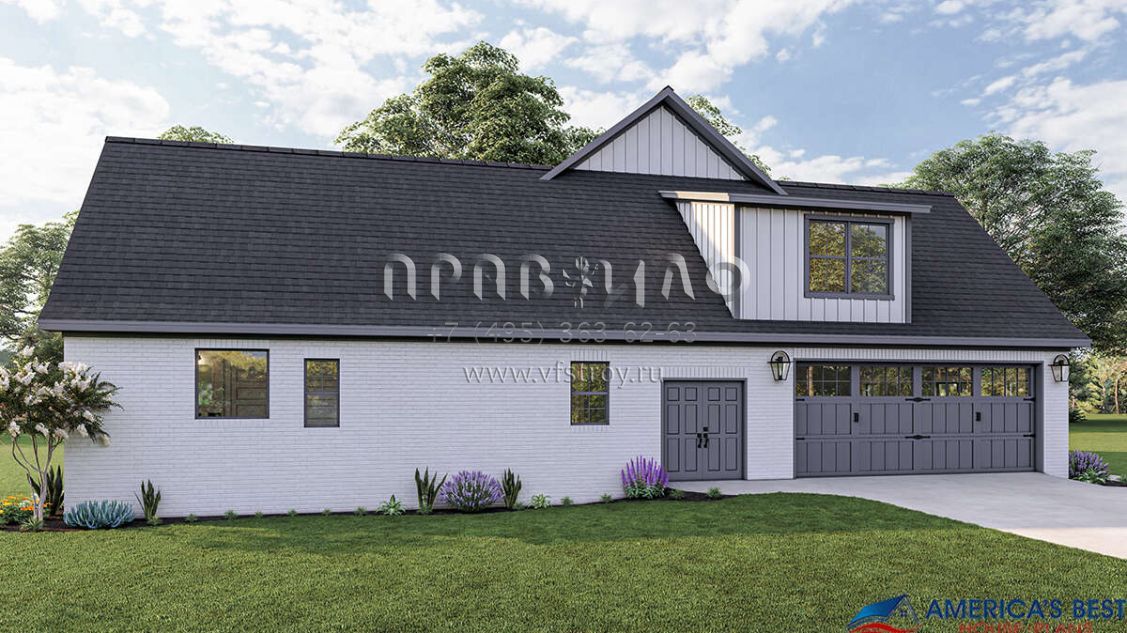 Проект двухэтажного дома с гаражом на две машины в стиле Ранчо S5-277 (041-00270)
