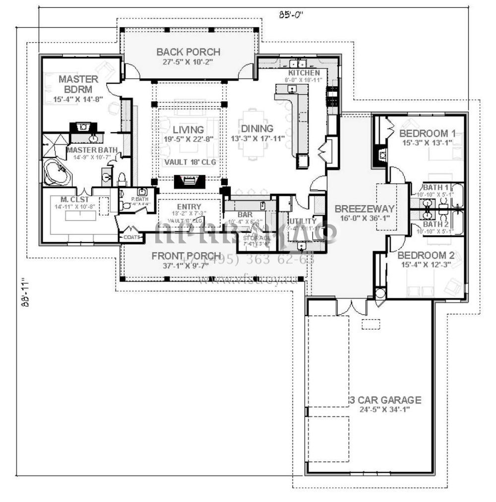 Проект одноэтажного дома с гаражом на три и более машин в стиле Ранчо S5-277 (3125-00003)