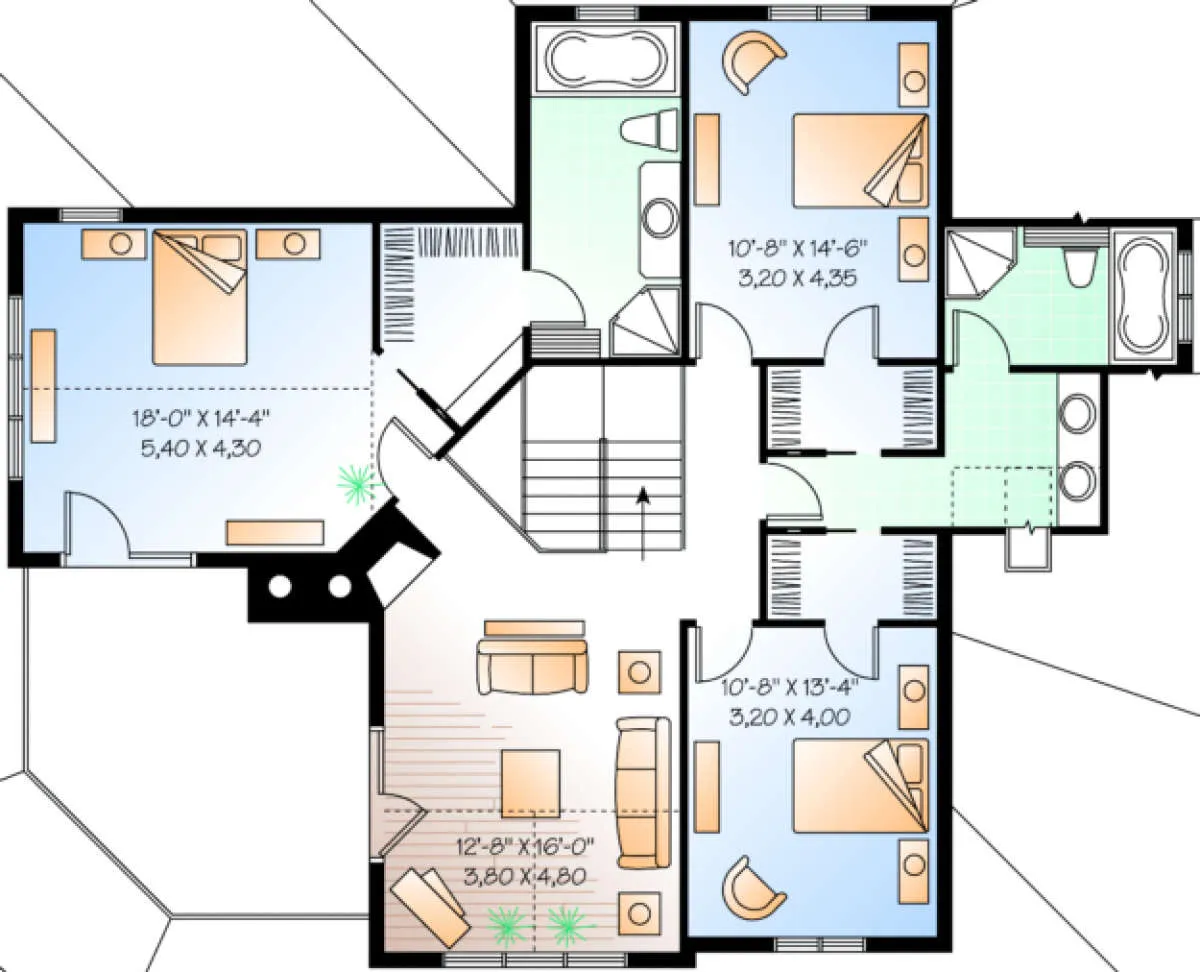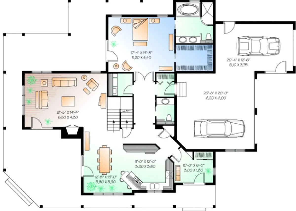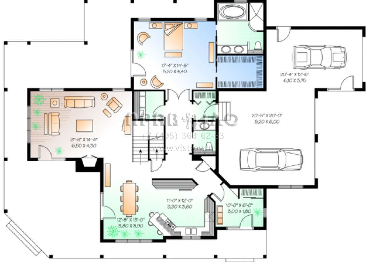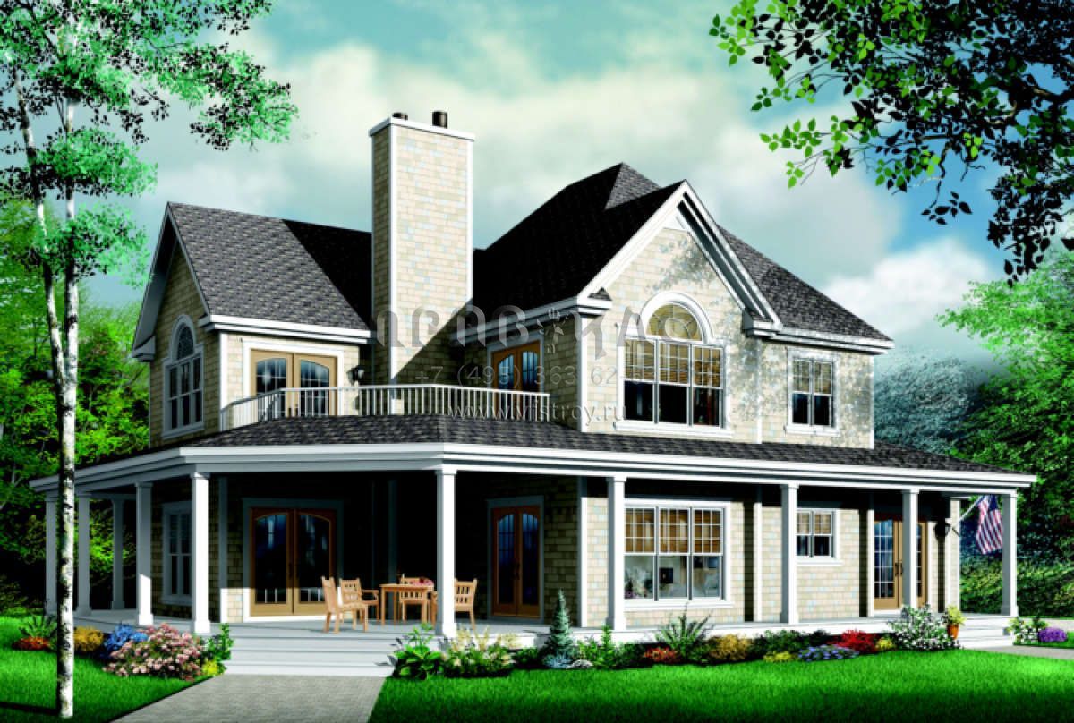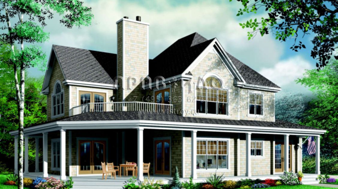 Проект двухэтажного дома с гаражом на три и более машин в стиле Ранчо S5-278 (034-00089)