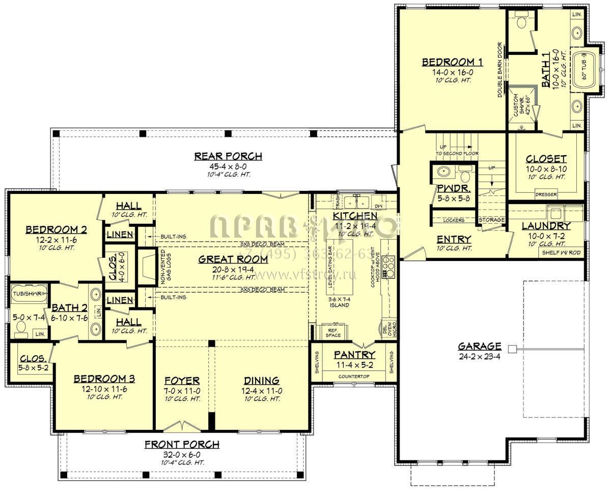 Поскольку этот проект разрабатывался иностранными архитекторами, для строительства дома требуется переработка проекта под действующие в России нормы. Данные визуализации проекта представлены для ознакомления с концепцией проекта. Проект разработан американским архитектурным бюро и представлен America's Best House Plans.