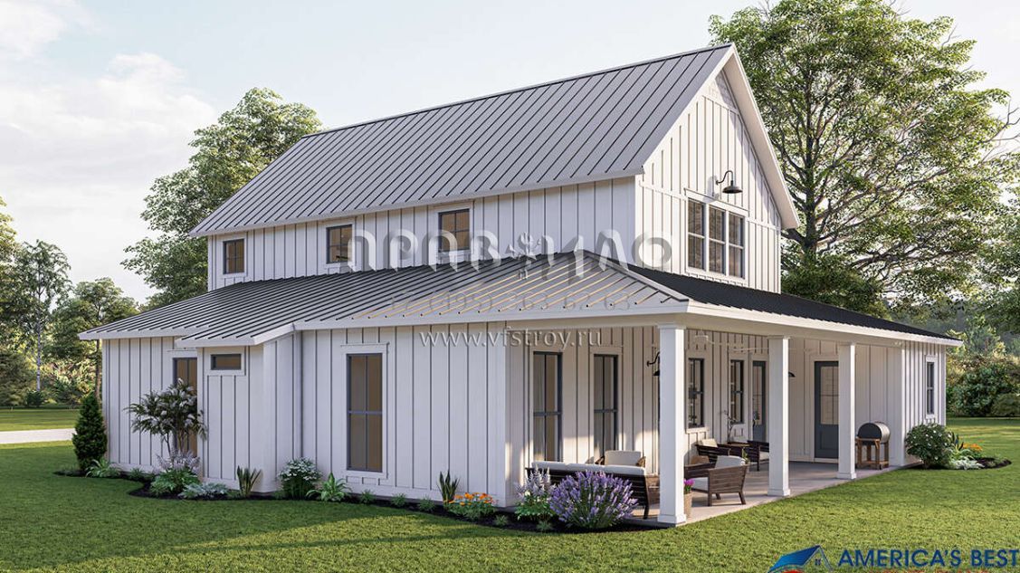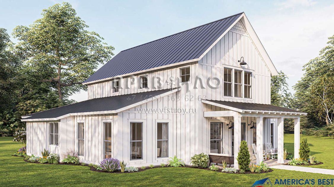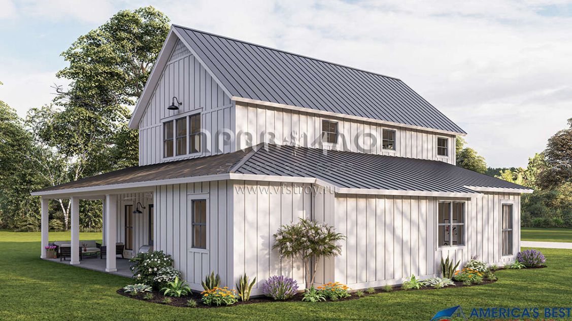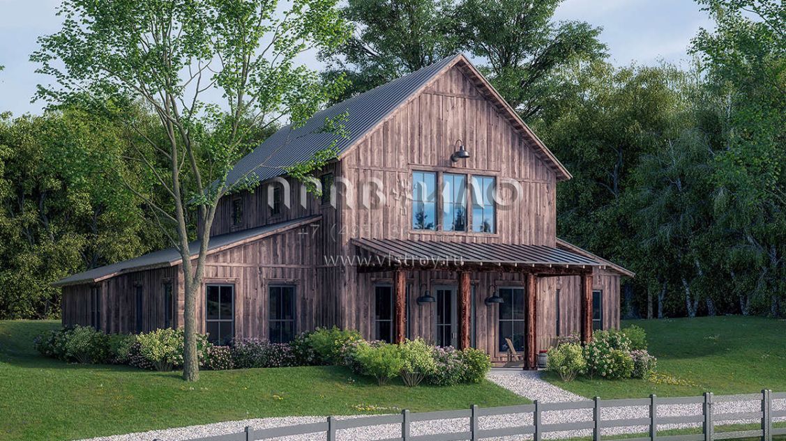 Проект двухэтажного дома без гаража в стиле БарнХаус S5-278 (041-00260)