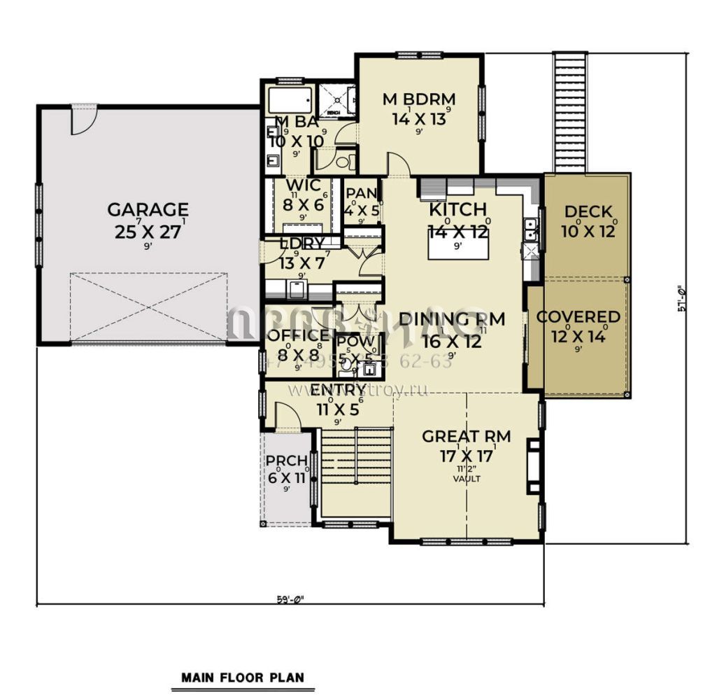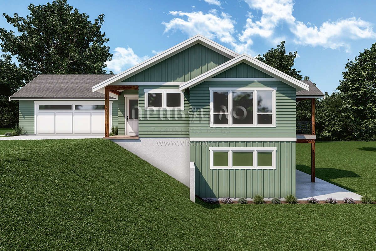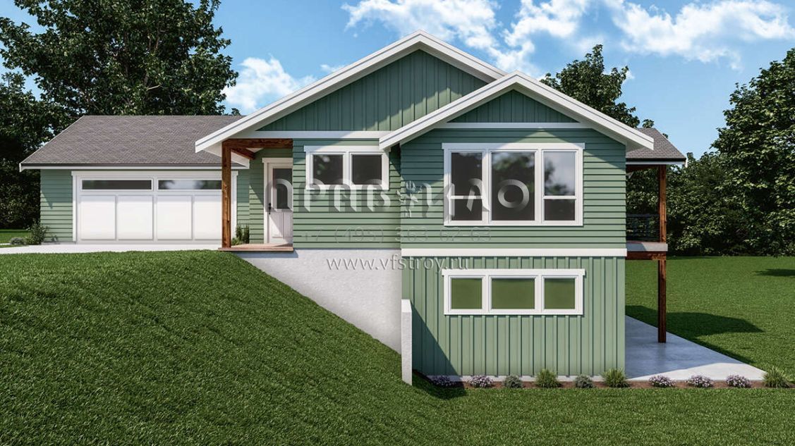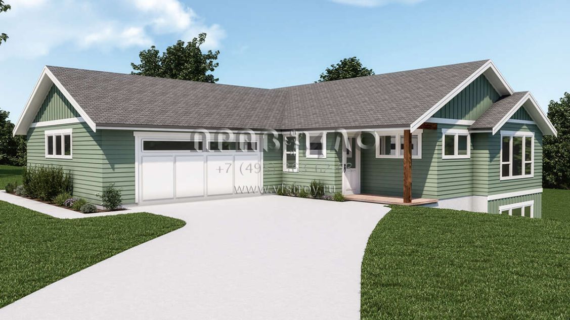 Проект одноэтажного дома с гаражом на две машины в стиле Ранчо S5-278 (2464-00007)