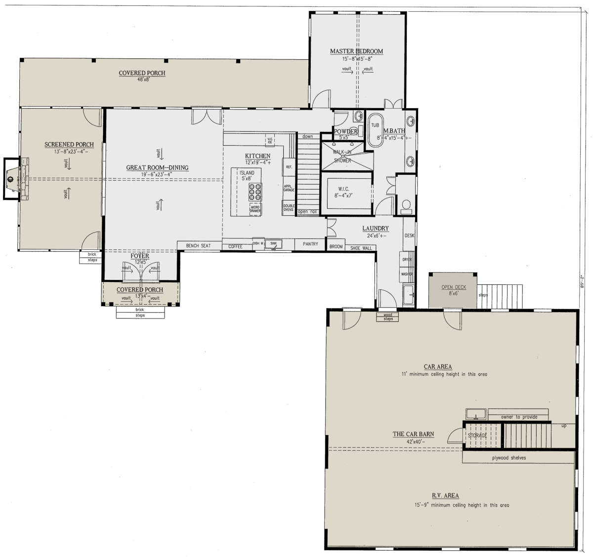 Проект одноэтажного дома с гаражом на три и более машин в стиле Ранчо S5-278 (286-00094)