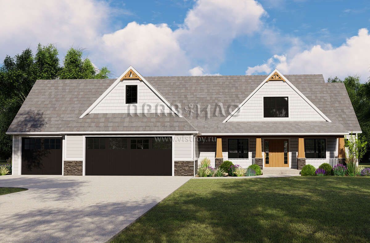 Проект двухэтажного дома с гаражом на три и более машин в американском стиле S5-278 (5032-00123)