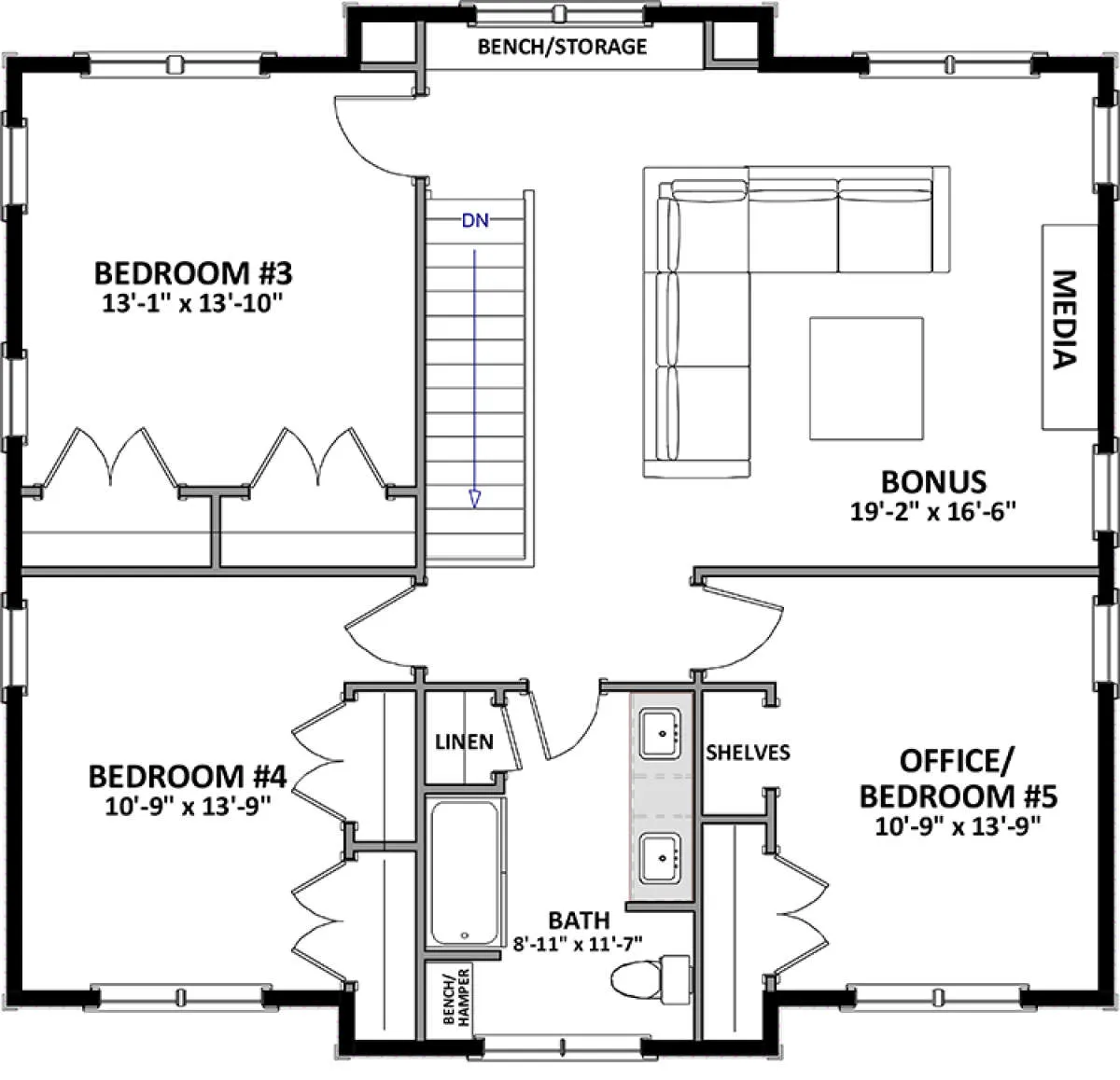 Проект двухэтажного дома с гаражом на две машины в американском стиле S5-278 (6849-00025)