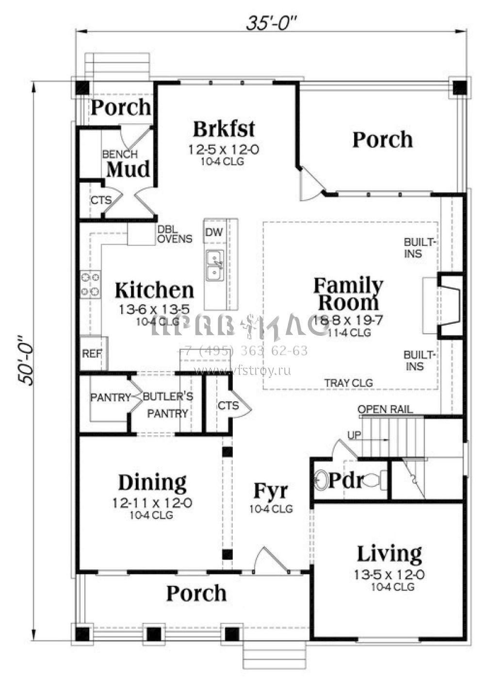 S5-279 (009-00224) Это иностранный проект, для которого требуется адаптация под нормы, действующие в Российской Федерации. Вы видите проект дома в стиле Ранчо. В этом доме сочетаются черты сельской постройки и аскетичность лофта. Внутри жильцы смогут проводить время с максимальным комфортом. Обратим внимание, что сейчас на планировках все размеры представлены в футах. Для перевода в метры вам необходимо значение в футах умножить на 0,3048.