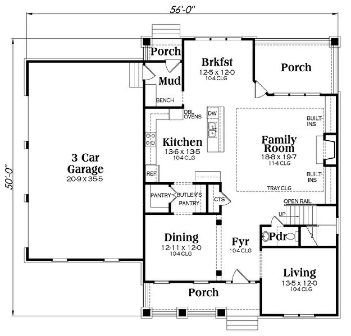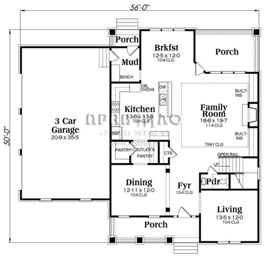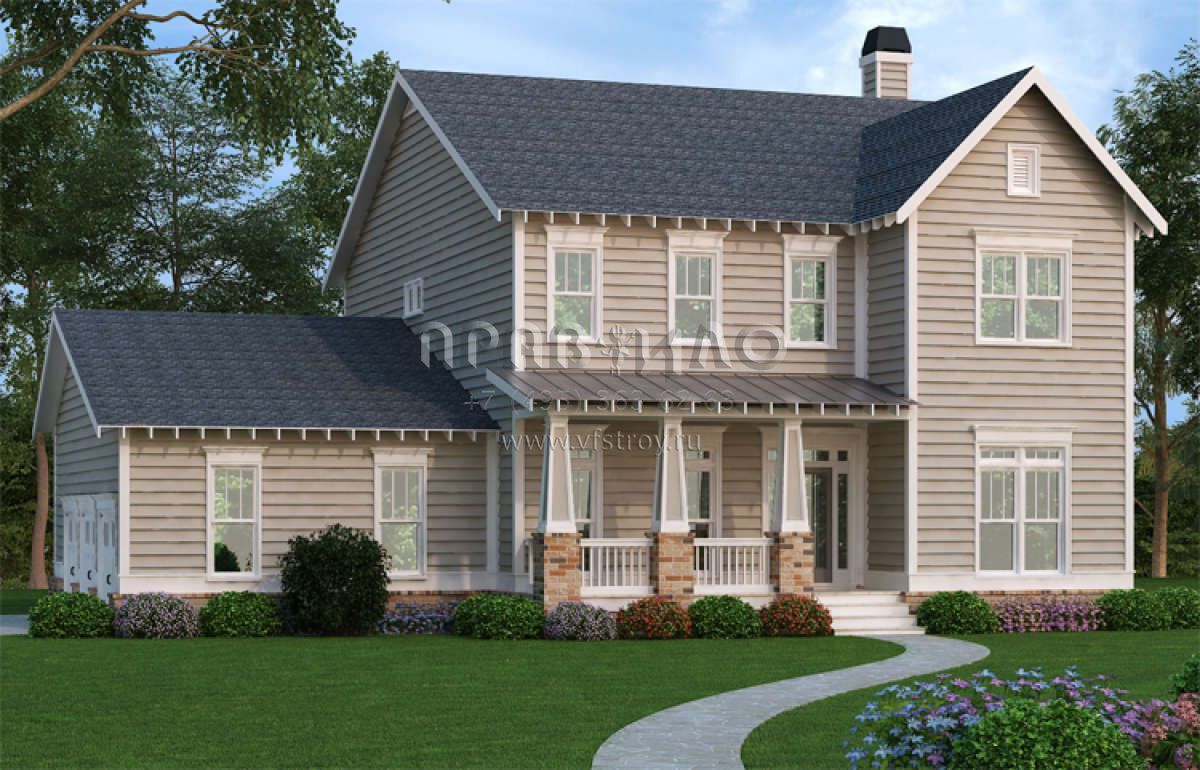Проект двухэтажного дома с гаражом на три и более машин в американском стиле S5-279 (009-00225)