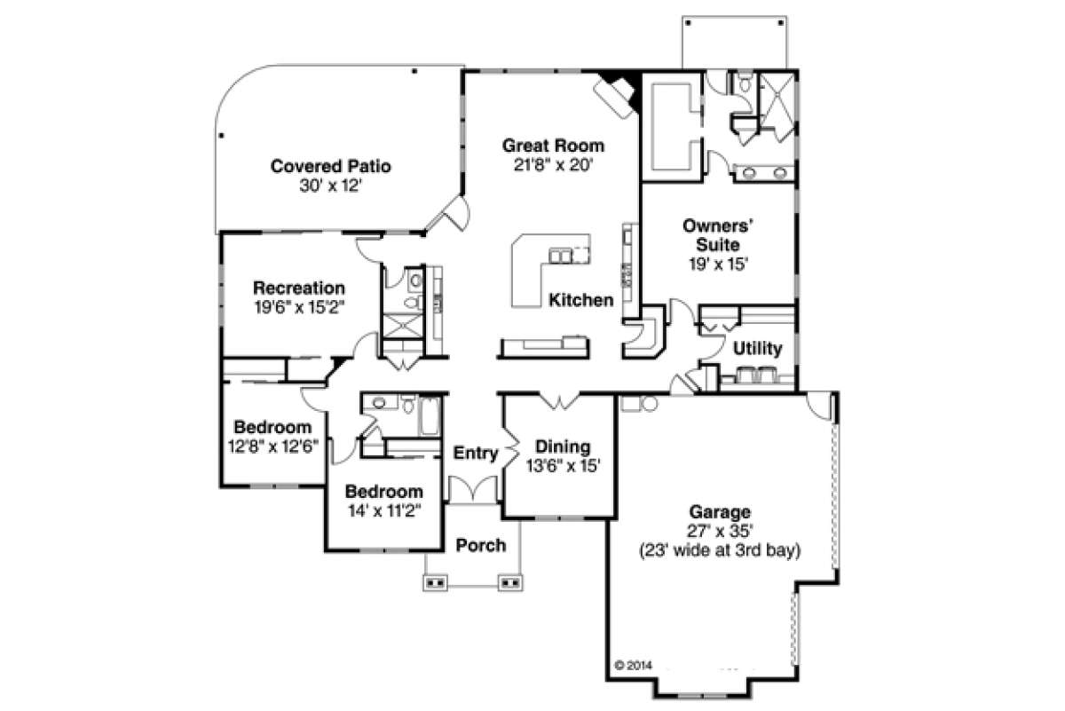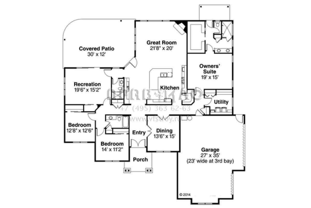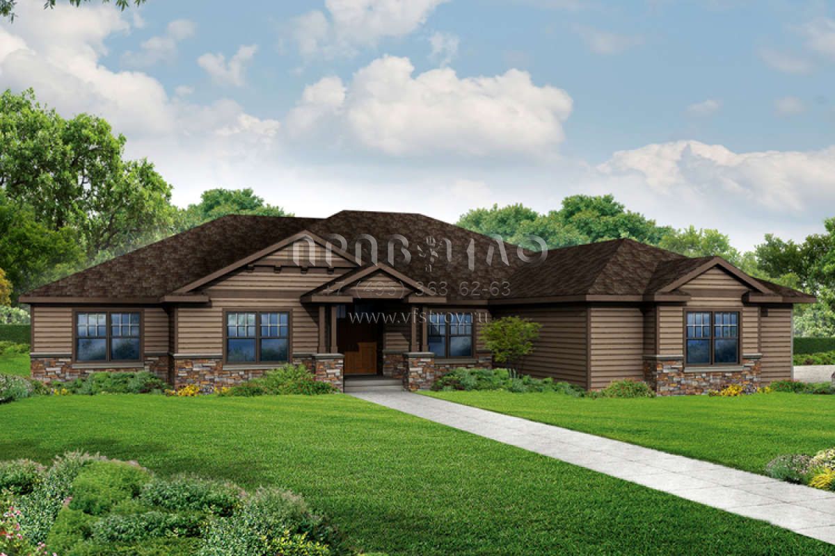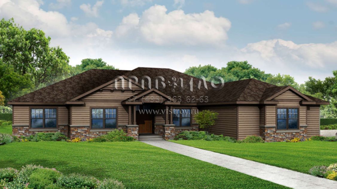 Проект одноэтажного дома с гаражом на три и более машин в американском стиле S5-279 (035-00693)