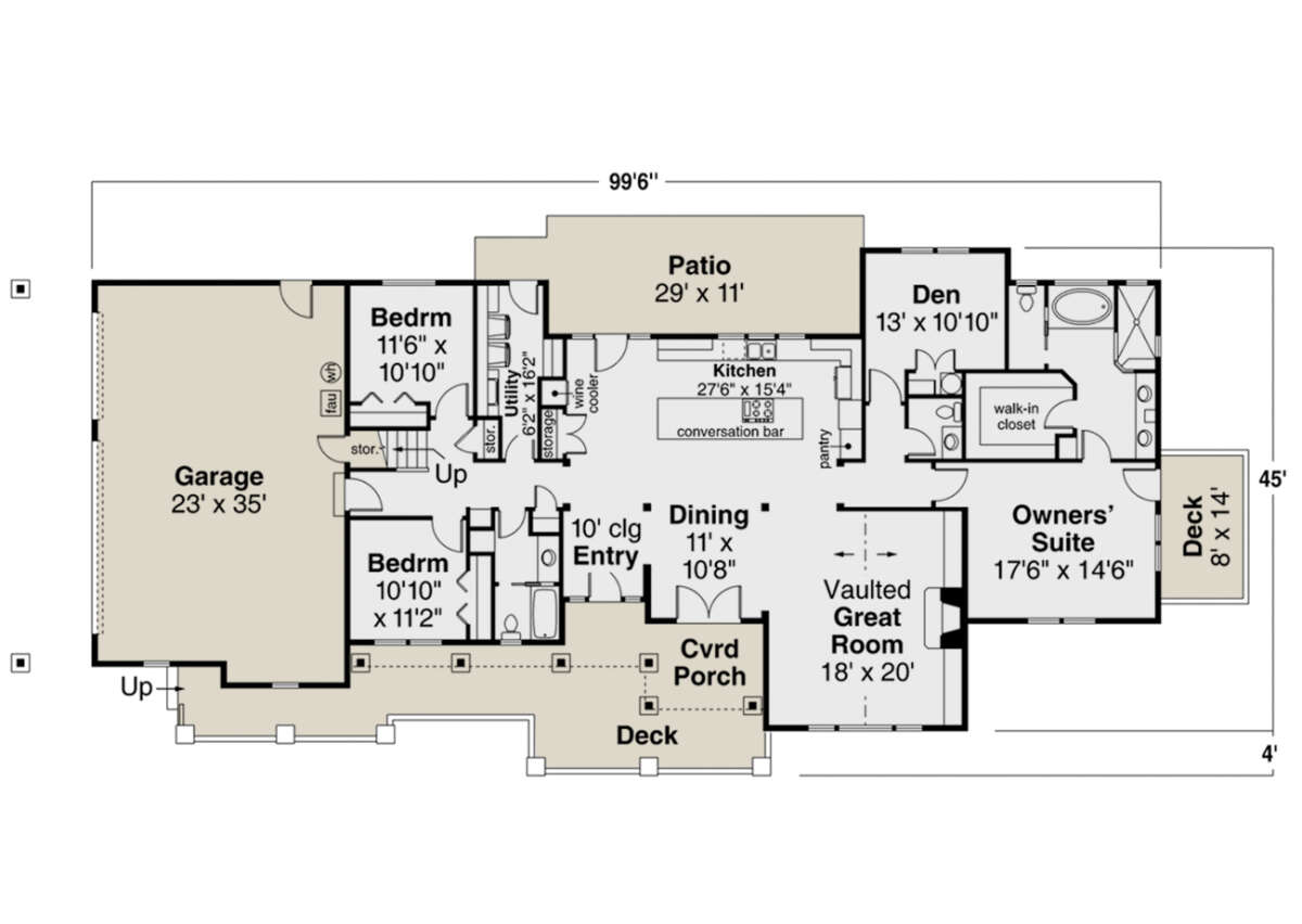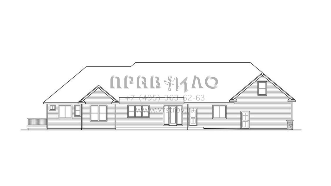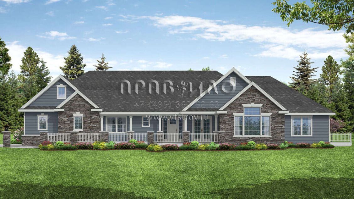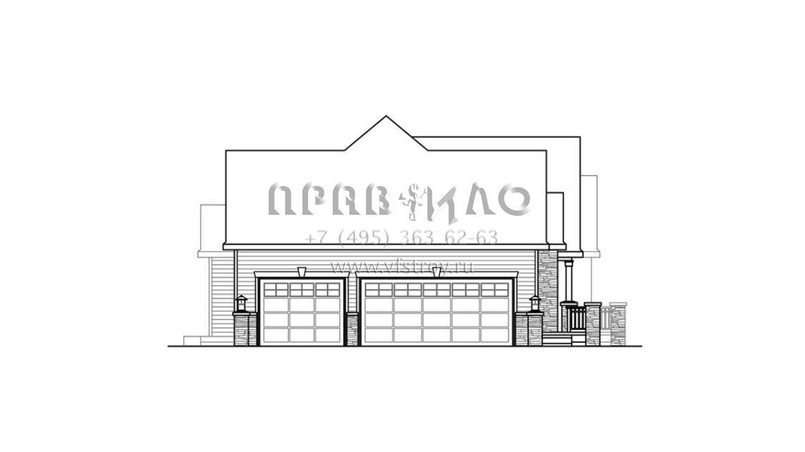 Проект двухэтажного дома с гаражом на три и более машин в стиле Ранчо S5-279 (035-01032)