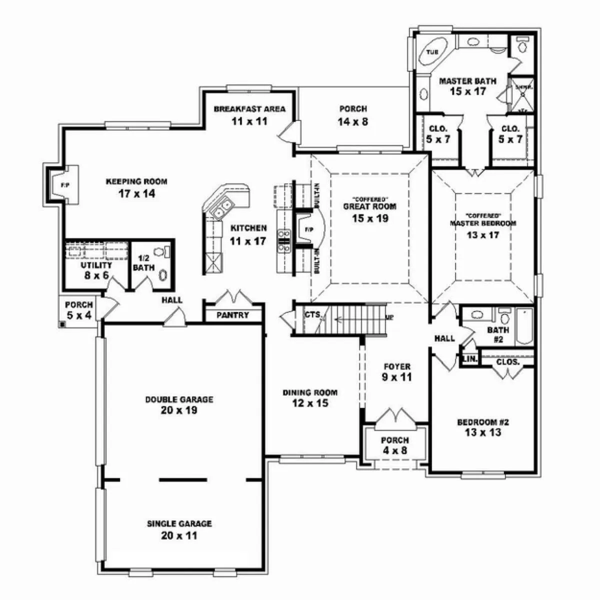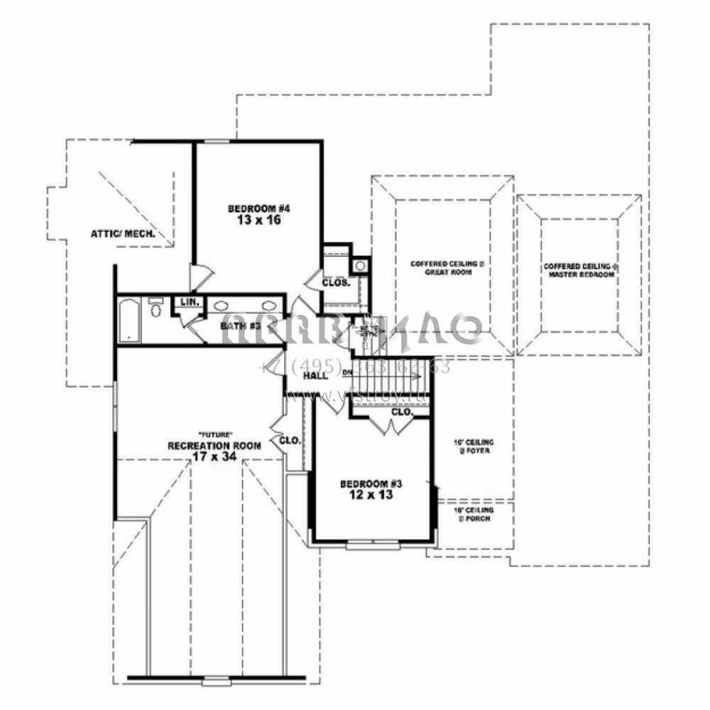 Проект двухэтажного дома с гаражом на три и более машин в стиле Ранчо S5-279 (053-02467)