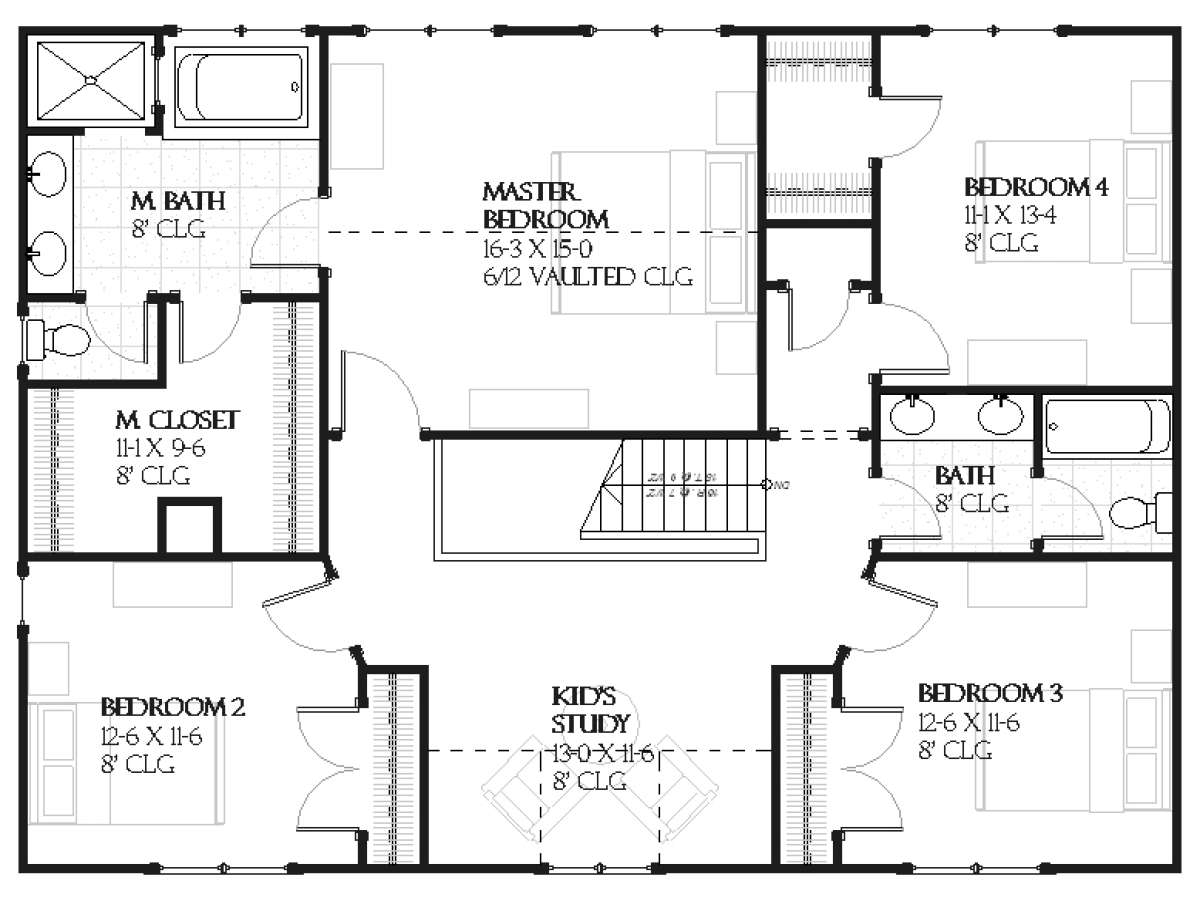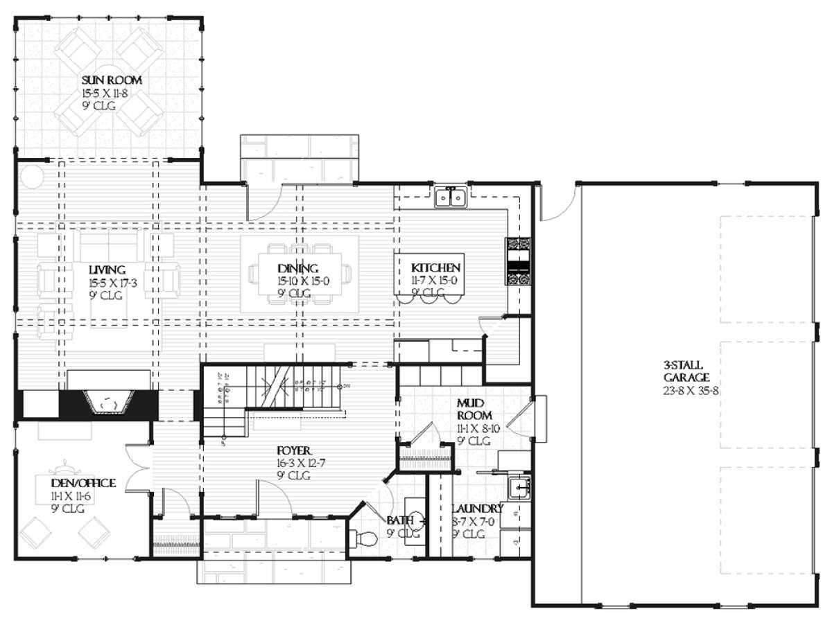 Проект двухэтажного дома с гаражом на три и более машин в стиле Ранчо S5-279 (1637-00078)