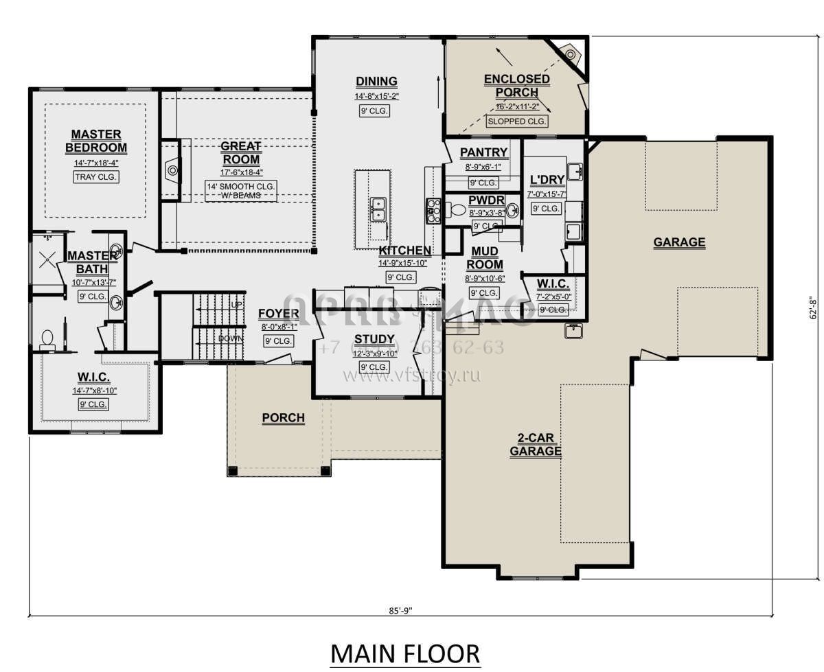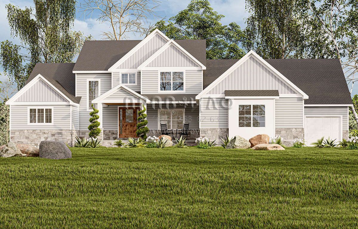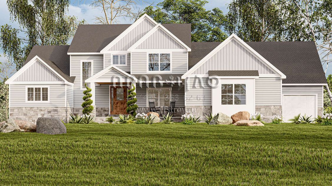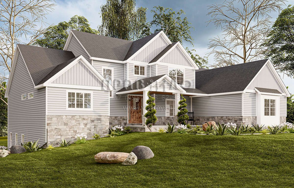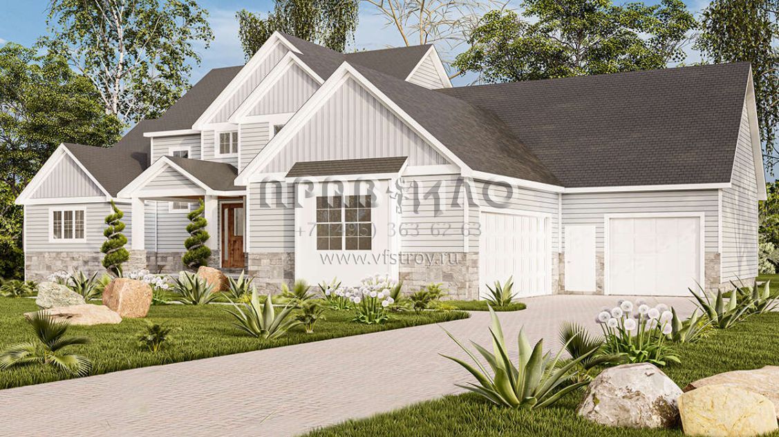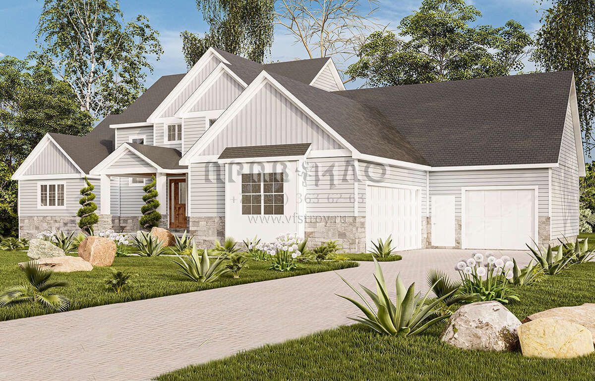 Проект двухэтажного дома с гаражом на три и более машин в американском стиле S5-279 (1958-00021)