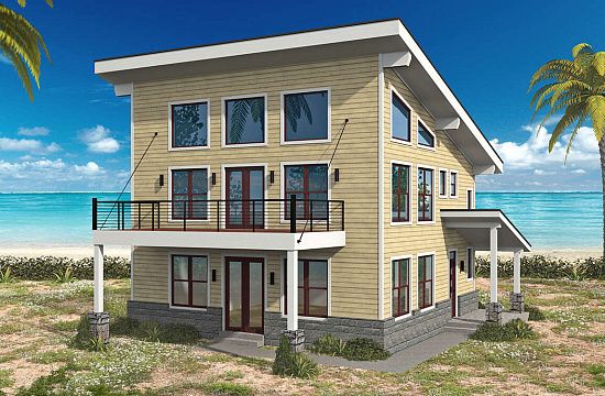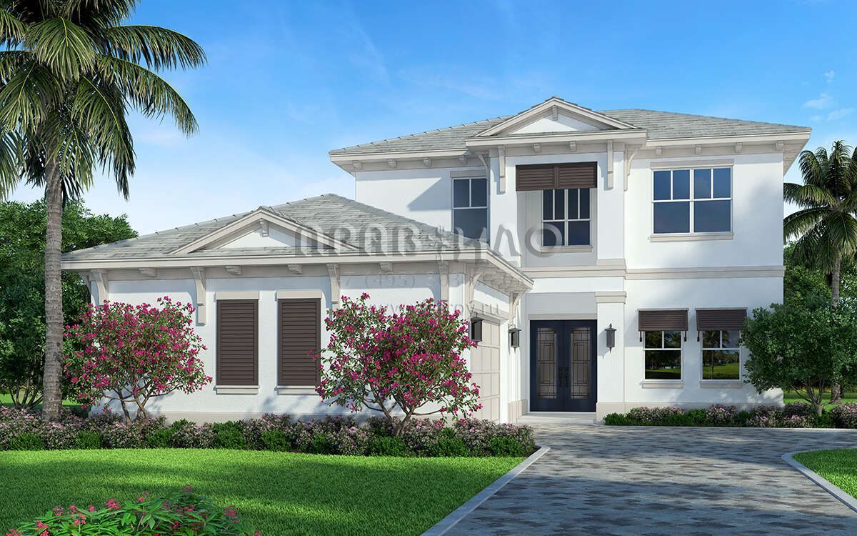 Проект двухэтажного дома с гаражом на две машины в прибрежном стиле S5-279 (207-00127)