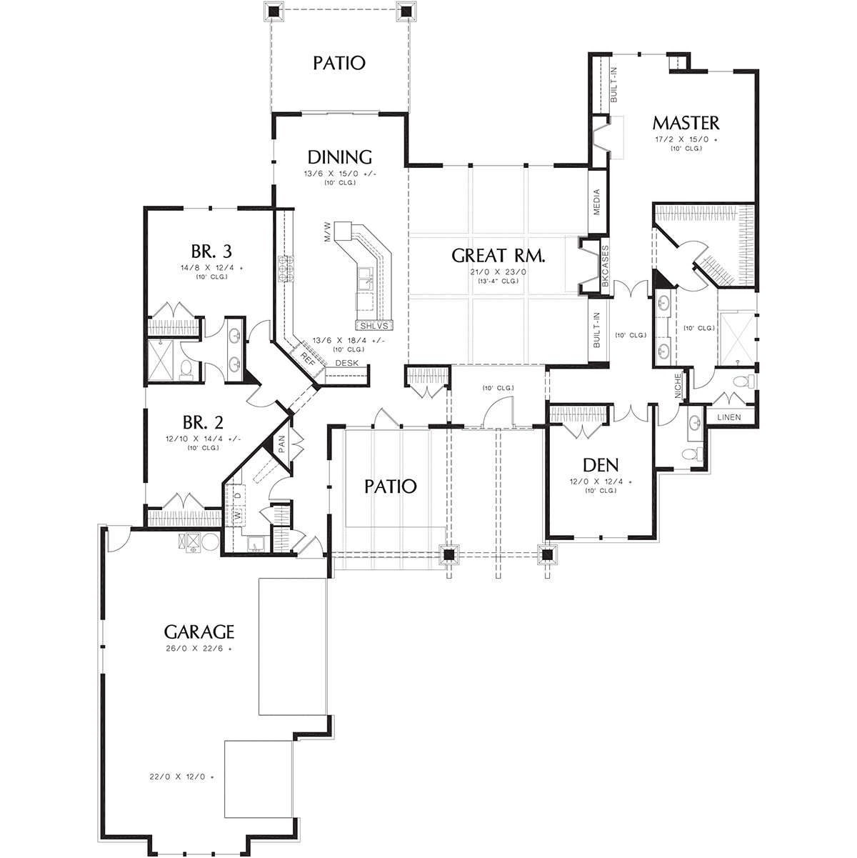 Проект одноэтажного дома с гаражом на три и более машин в американском стиле S5-279 (2559-00691)